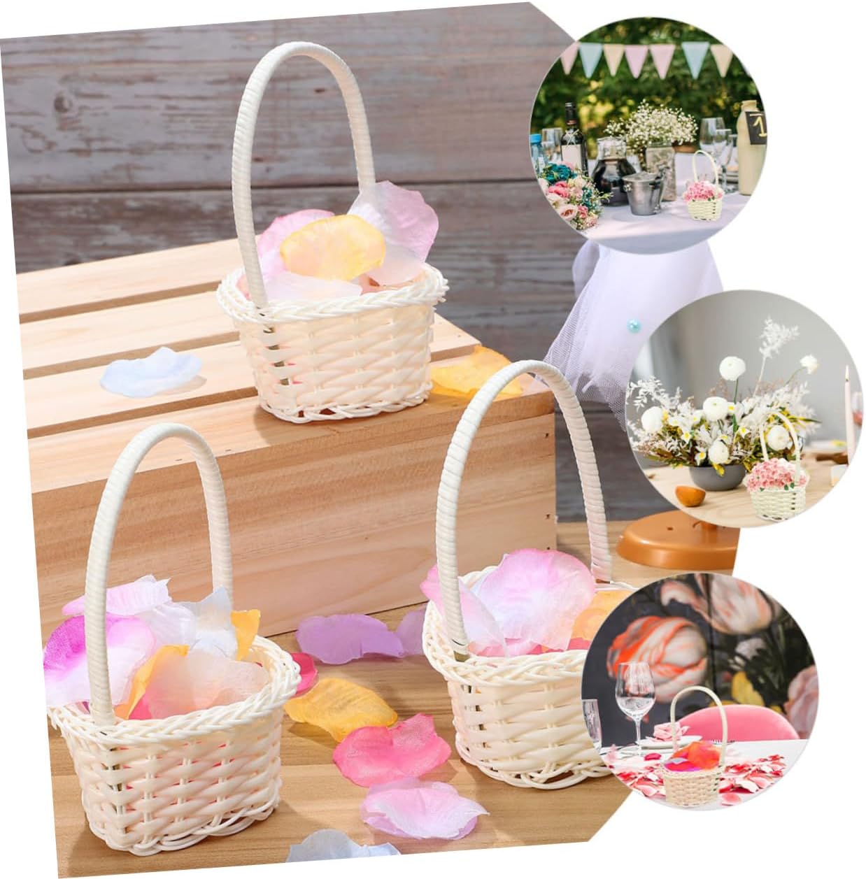 Package List 48 x flower baskets Features -Color:Beige woven baskets wedding flower basket -Size:14.00X9.00X8.00cm/5.50X3.54X3.14in wedding basket -Material:Plastic craft basket with handles - Proper for storing flowers, fruits, candies, and so on, this basket can also be used as a daily container flower basket woven. - This basket is a must-have party accessory for wedding party, wedding anniversary, engagement party, proposal, etc decor woven basket. - Good texture, no burrs and with handle design, easy to take when having parties like wedding, birthday and more. woven basket for flower picking - Lightweight and easy to carry, suitable for flower of all ages. Can be used as a decoration after the event, . basket for wedding - Made of good materials, and . workmanship, every detail is carefully crafted. floral basket for weddingGoods Descriptionflower shaped basket Are you looking flower basket for wedding? This flower basket can be used for dried flowers, silk flowers, fresh flowers, etc.basket decor If you are hold a wedding party, prepare this flower basket for your wedding.decor woven basket Easily meet your different needs, give you a pleasant using experience.handheld flower basket Suitable for most wedding styles, like vintage, modern, rural and much more