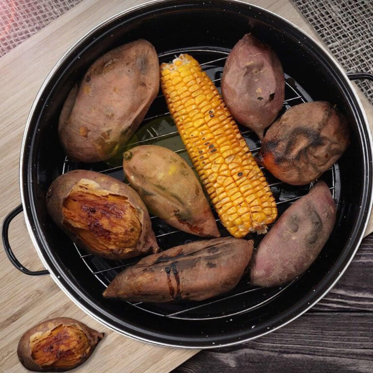 Package List 1 x Pot with Lid Features -Color:Multi multi-function roasting pan -Size:28.00X24.00X13.00cm/11.00X9.43X5.11in kitchen roasted pan -Material:Enamel and stainless steel daily use cooking pot - Widely applied in home, food store, restaurant, camping and other places in need baking pan - The special design can keep food from rolling and sliding with a delicate and practical design roasting pan - It can withstand high temperature, which is not easy to deform and break cooking supply - Can be used for roasting much food, such as potatoes, corns, sweet potatoes, chicken wing, Chinese chestnut, etc daily use roaster - The double handles is more convenient to move and use, safe and secure, very practical roasted sweet potato pot.Goods Descriptionmulti-function roaster Smooth surface for easier to clean and wash.cast iron baked pot It can withstand high temperatures, which can be used for a long time.multi-function roasting pot want to have a multi-functional Cooking Pot? If so, our covered roaster is carefully prepared for you.daily use cooking pot It can be used to bake sweet potato, corn and so on
