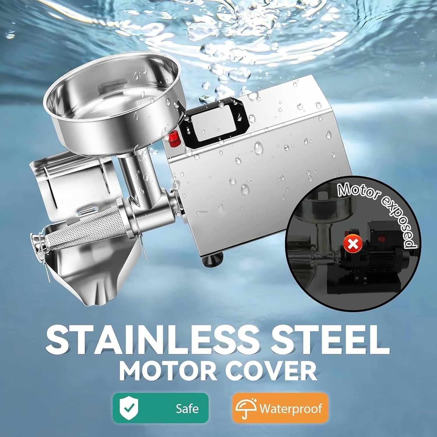 ▶ MAKE DELICIOUS FOOD WITHIN REACH - KETCHUP MAKER, YOUR KITCHEN ASSISTANT !!!▶ Sweet jam can always light up the taste buds instantly and add a touch of pleasure to life, but the cumbersome sauce making process is daunting. Now, all this will be solved !▶ Our ketchup maker is made of food-grade 304 stainless steel, which is safe, healthy, sturdy and durable, so you can use it with confidence. It has efficient and powerful performance, whether it is delicate ketchup, rich fruit puree, or refreshing fruit and vegetable juice, it can be easily controlled to meet your diverse needs for delicious food.▶ Simple opera-tion and convenient installation - no complicated steps are required, owning it will make every meal full of surprises!【Specification】- Model: ETC-1C- Color: Silver- Material: 304 stainless steel- Motor material: pure copper- Voltage: 110V/220V- Frequency: 50/60 Hz- Power: 450W- Productivity: 70-150 kg/h - Hopper diameter: 215 mm/8.4 inches- Net weight: 9.5 kg/21 lbs.- Product size: 53.5×25×33.5 cm/21.06×9.8×13.19 in.【Package Content】● Tomato Sauce Maker x 1● Funnel x 1● Channel x 1● Pestle x 1● Mounting accessories x 1 set● User manual x 1【Usage Process】>> Step 1: Place the chopped toes into the funnel.>> Step 2: Press the Start button.>> Step 3: Press the tomatoes with a pestle.>> Step 4: Prepare fresh tomato sauce.【Notes】⚠ Please note that the maximum operating time (uninterrupted) of this product is 5 hours. Allow the unit to cool for 5 minutes before use.⚠ Be sure to unplug the power plug before cleaning.▶ If you have any questions, you can send us an email and we will reply within 24 hours.