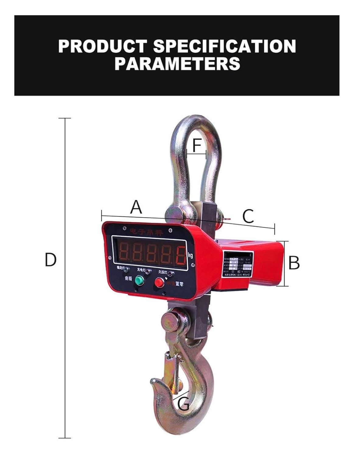 Built-in 6VH4AH battery, built-in charging and low-voltage protection circuit low energy consumption design, the battery can be used for about 60 hoursAccurate weighinghigh strength hook90 days standbylow power designfull metal caseHigh-definition LCD large displayIndustrial grade sensorthickened hook and loopThick metal shellHigh Strength Quenching HookBuilt-in lithium battery