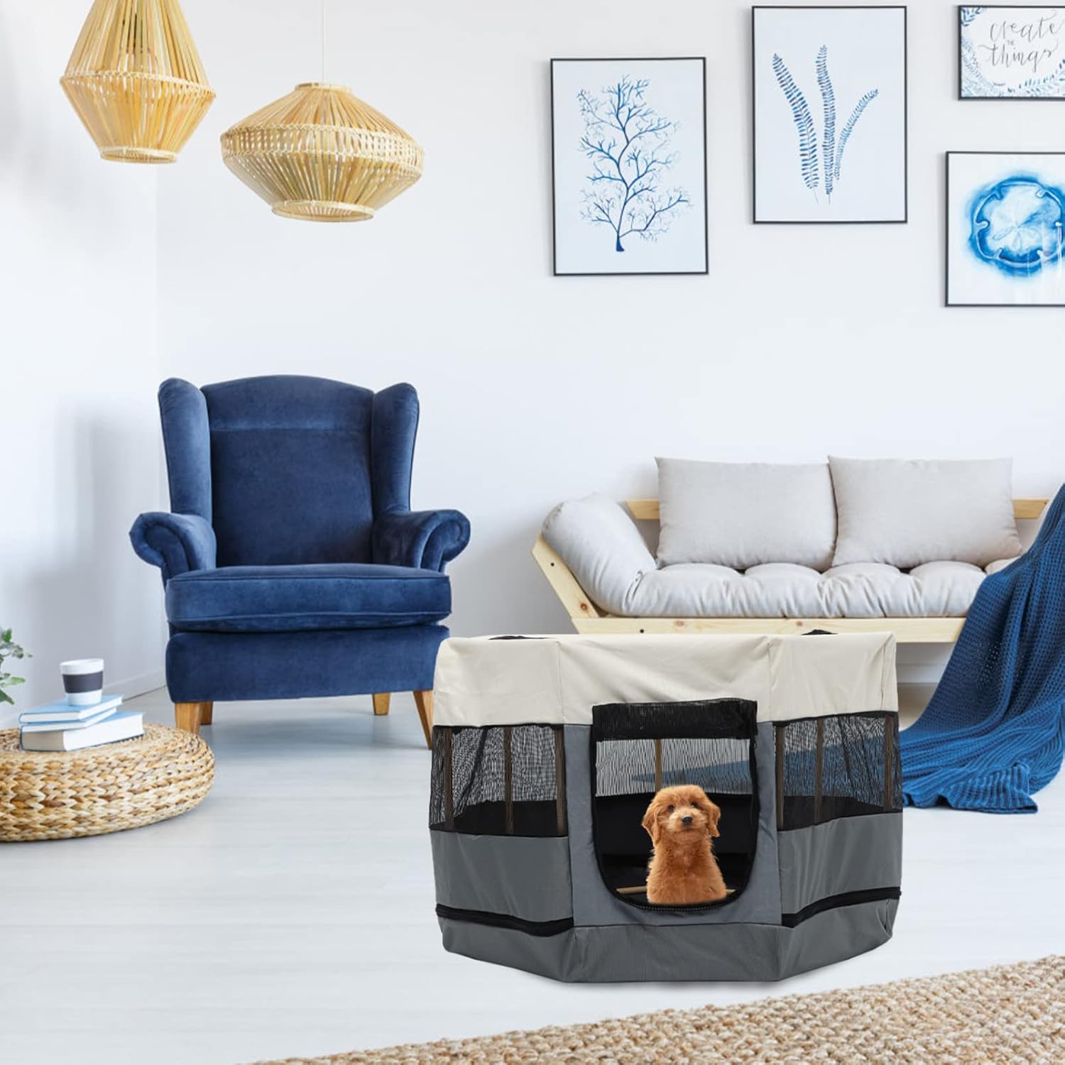Package Include 1 x pet nest Features -Material:Oxford cloth, plastic mesh cloth portable puppy playpen -Size:74.00X74.00X43.00cm/29.08X29.08X16.90in portable dog fence -Color:Beige, grey kitten playpen -It can be a and thoughtful your friends with pets at home, and they will be very happy playpen tent . -The structure is stable, and reliable, not easy to , and pet playing place. -Your pets will feel relaxed and happy with this fence. It is easy to install and use Octagonal pet fence. -A variety of uses, suitable for pet kennels, pet cages, and cooling beds, bringing you a experience pet sleeping house. -Easily accommodates a wide variety of species and fits in small to medium pet spaces pet fence for home.Goods Informationportable dog fence The pet can both play and rest in this playpen.portable puppy playpen Made of high grade material, enough for your long-term use.cat sleeping house Searching of a pet playpen? Our pet playpen will be the choice for you.indoor pet game tent and portable design, ensures its popularity