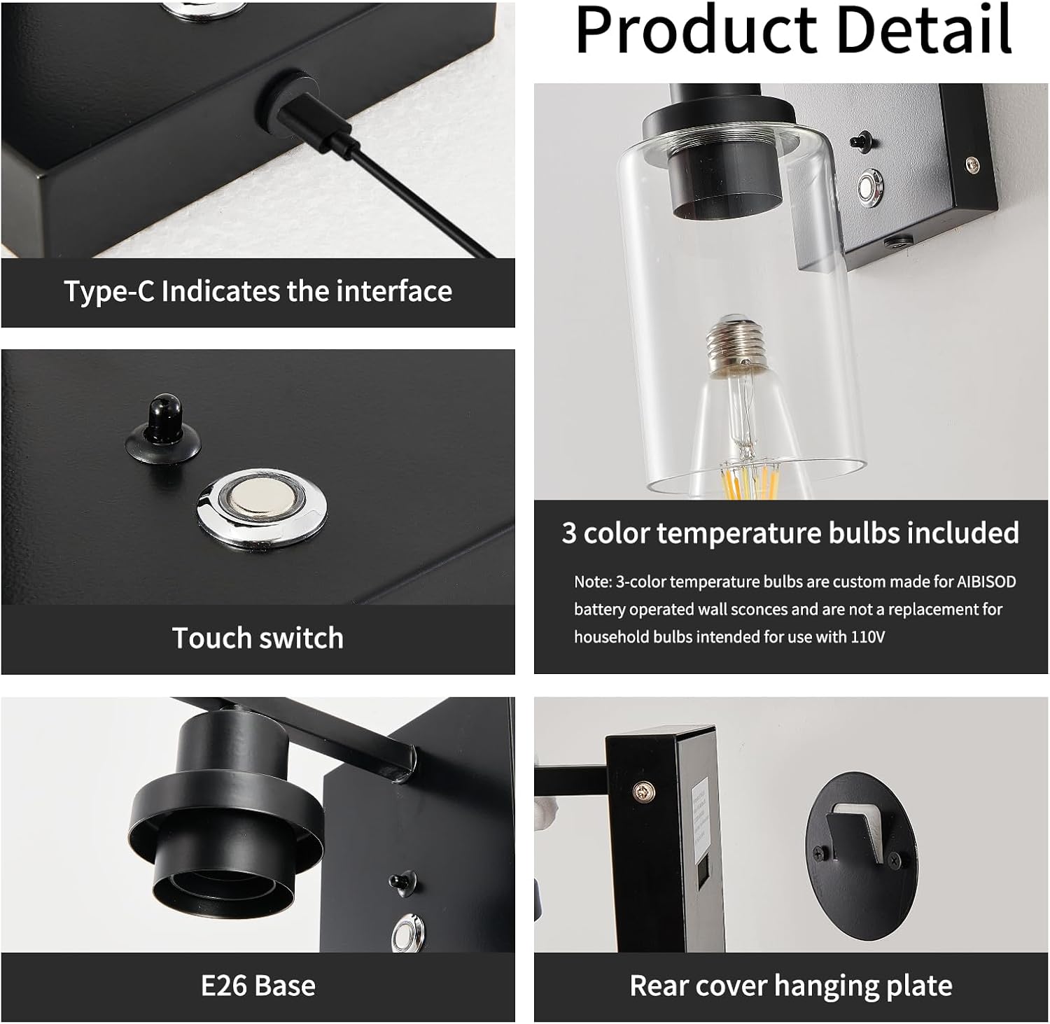 | Included Components | 3 Color Temperature Bulb, Installation Accessories & Instructions, Rechargeable Battery Wall Sconce, Remote Control, USB Cables |