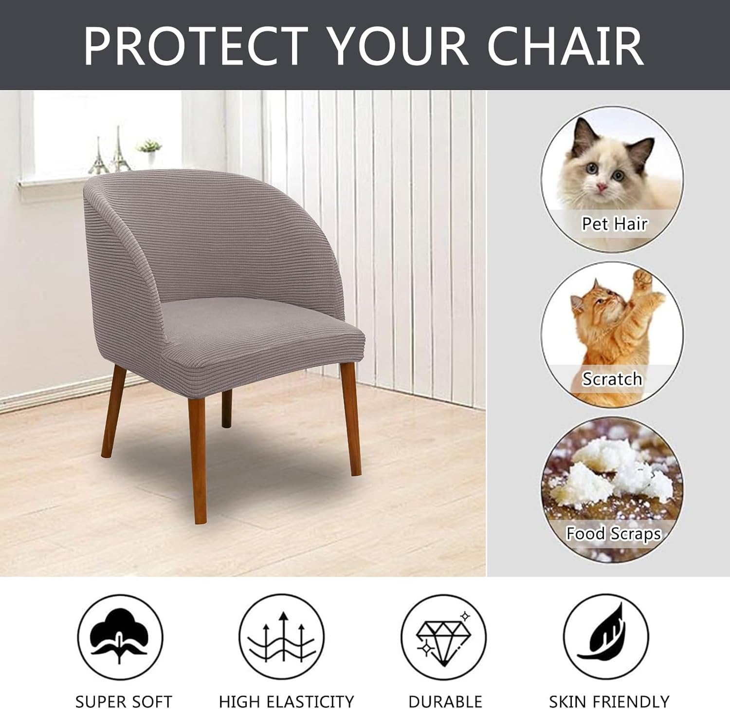 Turn your old chairs into a luxurious focal point with our exquisite knitted dining room chair covers with elasticated curved round back chair covers and take your home décor to the next level. Order now and experience the change! Features:The chair covers are made of High quality polyester fabric, which is soft and Comfortable, wrinkle-resistant and durable.The High elasticity of the chair cover can Perfectly ensure the comFort and practicality as well as functionality of the chair, bringing you a Perfect Comfortable experience.Curved back chair cover with armrests can effectively protect your chair from dust, stains, food residue, pet scratching and other daily damage, prolonging the life of the chair, which is the best Choice For families with children and pets.Exquisite knitted chair covers are colourful and can be Widely Used in a variety of home decoration and event Occasions, such as: family dinners, kitchens, hotels, weddings, celebrations and so on.The bottom of the chair cover is sewn with elasticated elastic loops, which can firmly fix the chair cover, not easy to slide and fall off, Perfectly fit the shape of the chair, practical and beautiful. Size: Back height: 35-45 cm (13-18 inches) Seat length: 40-50 cm (15-20 inches) Seat width: 35-45 cm (13-18 inches) Package Includes: 1/2/4/6 pieces chair cover Attention:Due to the manual measurement of the Size, there is a slight error, which is normal.Due to the different lights and monitors, there is a slight error in the colour, the specific colour in kind shall prevail.