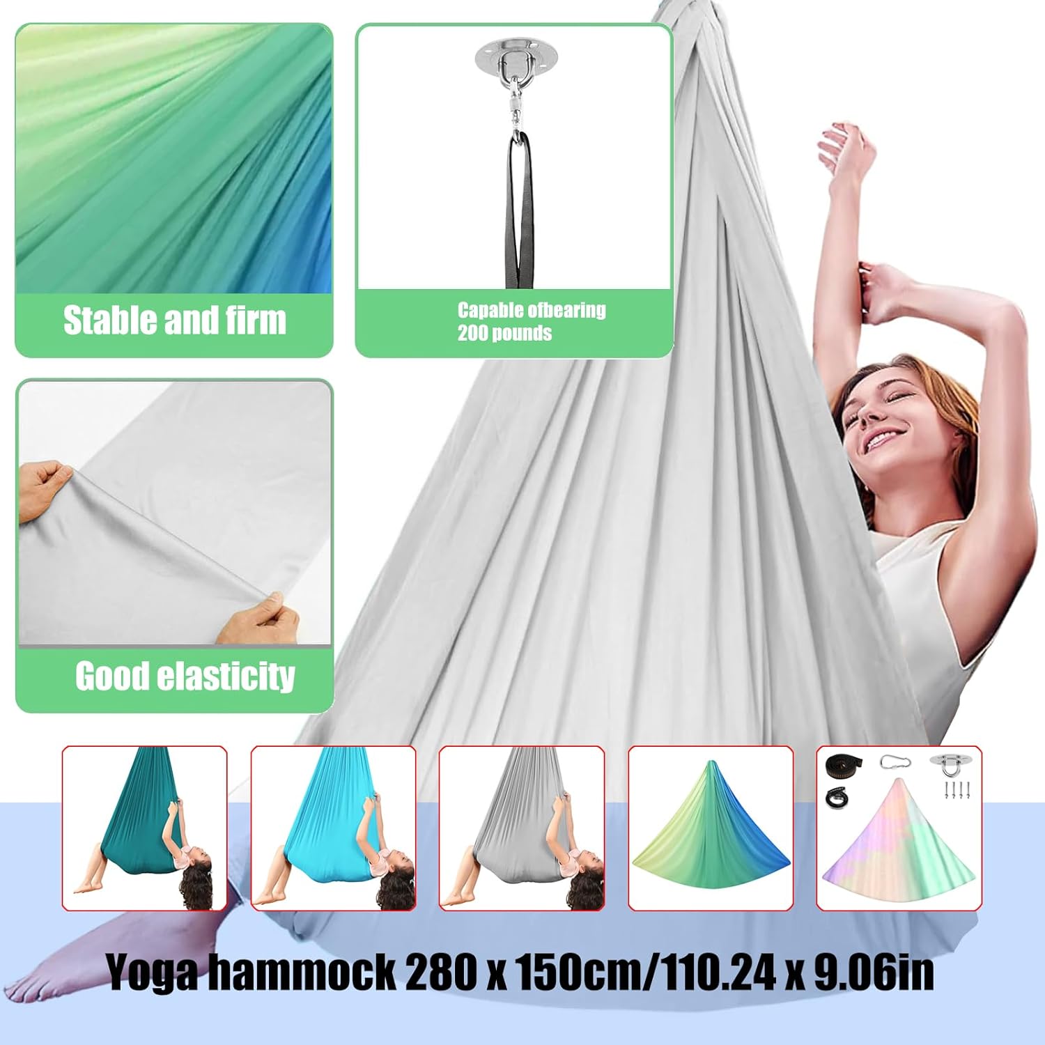 Double Layers Comfortable Cuddle Swing Sensory Swings Stretch Swing Hammock Easy to InstallationFeatures:This swing hammock comes preassembled and can used indoors or outdoors.Ours is double layered and make of a soft blend, making it feel comfortable against skin.With a gentle rocking motion, the hammock swing is enjoy and perfect to develop balance, coordination skills.It can used both as a calming sensory aid as well as a stress reducing activity.Our unique design allows and girls to enjoy their activity comfortably, providing cognitive Specifications Component: Polyester Stretch Fabric Size: about 280x150cm/110.24x59.06''Color: 5 Kind OptionalPackage Includes:1 Set Hammock Hanging ChairNote:Please allow 1-3cm errors due to manual measurement.Due to difference betweeen different monitors,the picture may not reflect the actual color the item.