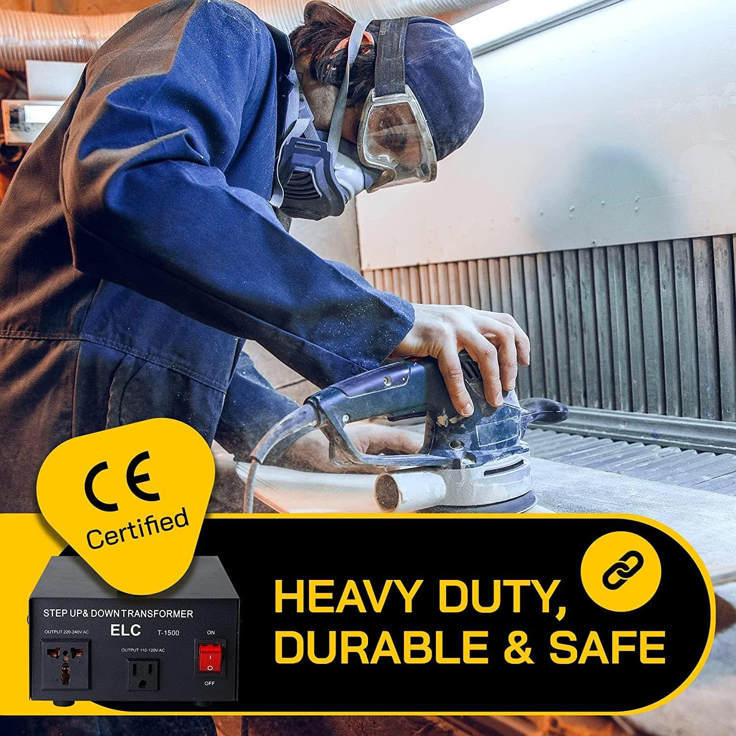 This voltage converter transformer is highly efficient with step up/down conversion. This transformer device makes no noise while in use, a complete silent while in use and easy to use. Our voltage transformer is convenient solution to converting voltage from 220v to 110v converter (step-down) or from 110v to 220v converter (step-up) for both home & industrial applications. It features a heavy-duty cord with a standard US 3-prong plug. We do not recommend this product for high wattage heat producing items such as coffee maker, expresso machine and welding equipment etc. For safety reasons, it's recommended to use a Voltage Converter/Transformer that's max watts is at least 2x higher than your appliance.For example; this 1500 Watt transformer can be used only with an appliance that uses up to 650 Watts that is to prevent damage from the transformer itself and the appliance being usedELC gives a wide variety of electronics equipment that allows to run high-end devices such as gaming consoles, hair dryer, hair straighteners, and many other types of devices. This product will let you operate US/Canadian appliances that are built to operate on 110/120v. Since the voltage conversion is 220/240v elsewhere, our accessories help you run devices with efficiency. It will not work with American 220 (Dual Phase, Not designed for US 220V)This equipment has 1 x 110V Socket, 1 x Universal 220V Socket.