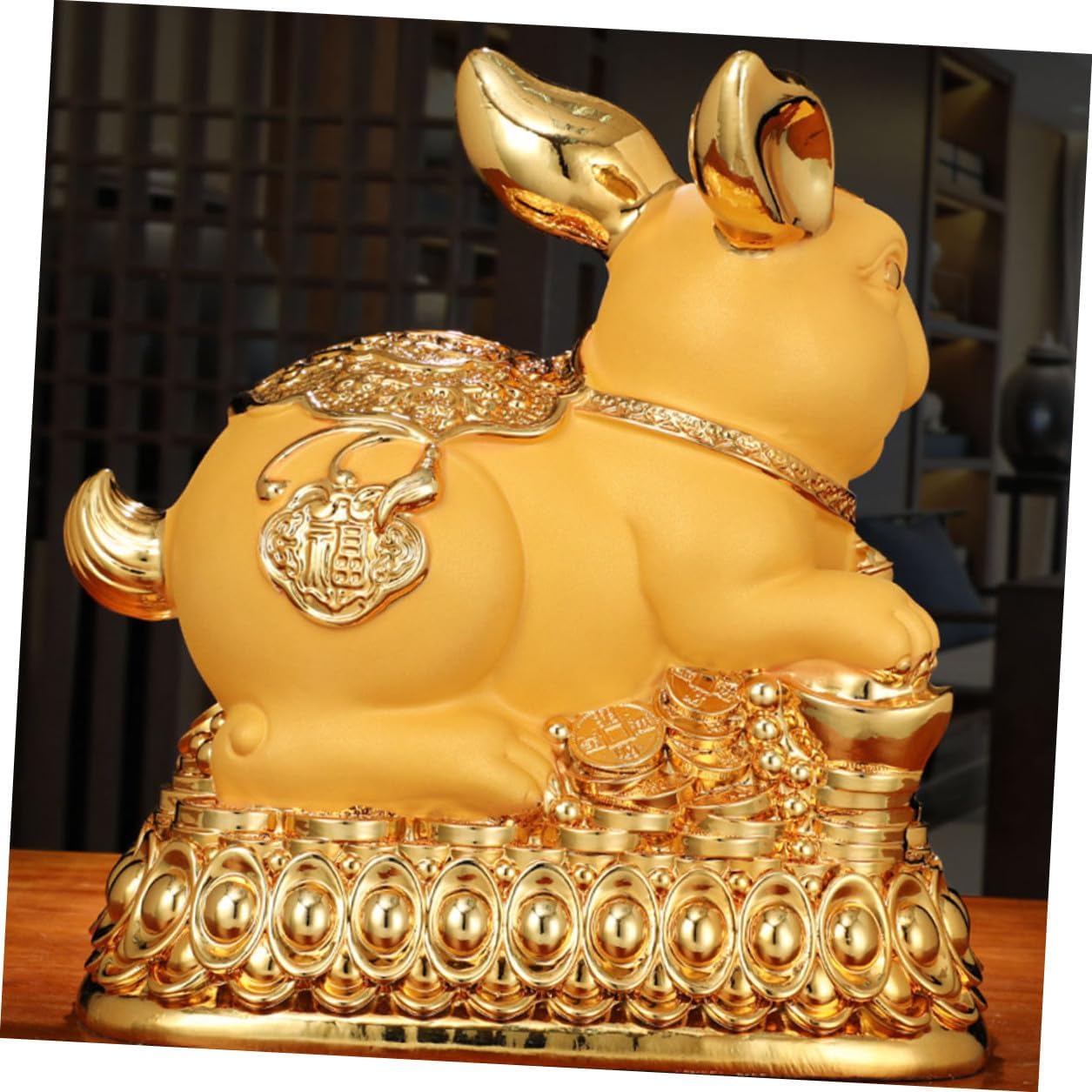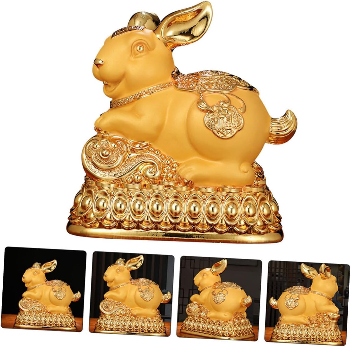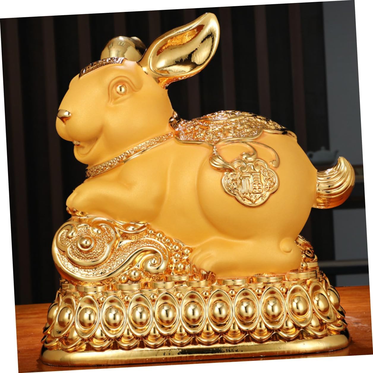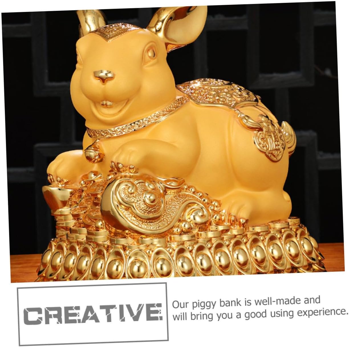 Package Include 1 x Golden Rabbit Piggy Bank Features -Material: synthetic resin -Product Info:Golden Rabbit Money Bank -Color: As shown -Size: 22.00X20.00X14.00cm/8.65X7.86X5.50in - Festive and adorable design makes it more chic and unique. The for storing your coins and other small items holder. - Suitable for various scenes such as bedroom, living room, study room, office, etc Coin Saving Bank. - This rabbit-shaped saving pot is creative and adorable to be an adornment, but it is still practical money boxes for adults. - This piggy bank is a very adorable, not only can help you store coins, but also can be used as a good desktop decoration Rabbit Saving Pot. - The piggy bank is made of durable and safe material, and can deposit and withdraw, very convenient.Goods Descriptionmoney saving bank decor You can use it to teach your how to and make a good financial plan, which is very helpful for their growth.rabbit decor This auspicious-looking piggy bank will meet your needs well and help stimulate interest in saving money.savings pot Do you want to help your develop a good habit of saving money? Then a practical piggy bank will be an indispensable prop