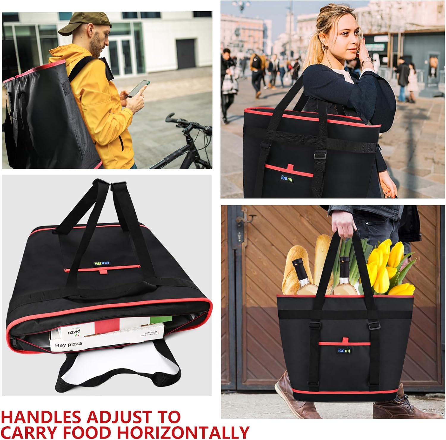 • Keeps Hot Food Hot: Our reusable grocery cooler bags sturdy webbing belt handles adjust to carry pizza, carry-out, and home-cooked dishes horizontally to avoid spills. The 3-layer construction ensures your food remains hot during transit. The interior is easy to wipe clean.