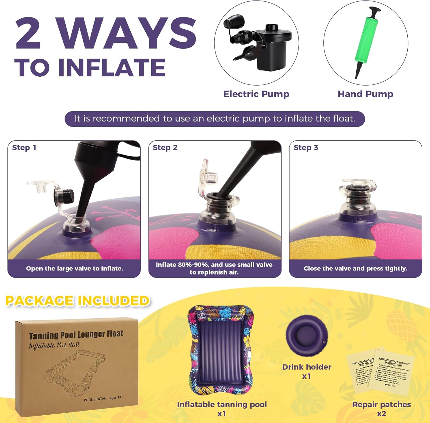 Pool Floats Adult, Large Inflatable Tanning Pool Lounger Float with Pillow & Cup Holders, Blow Up Sun Tanning Bed Pool Rafts Floaties for Adults Backyard Beach Lake River Party