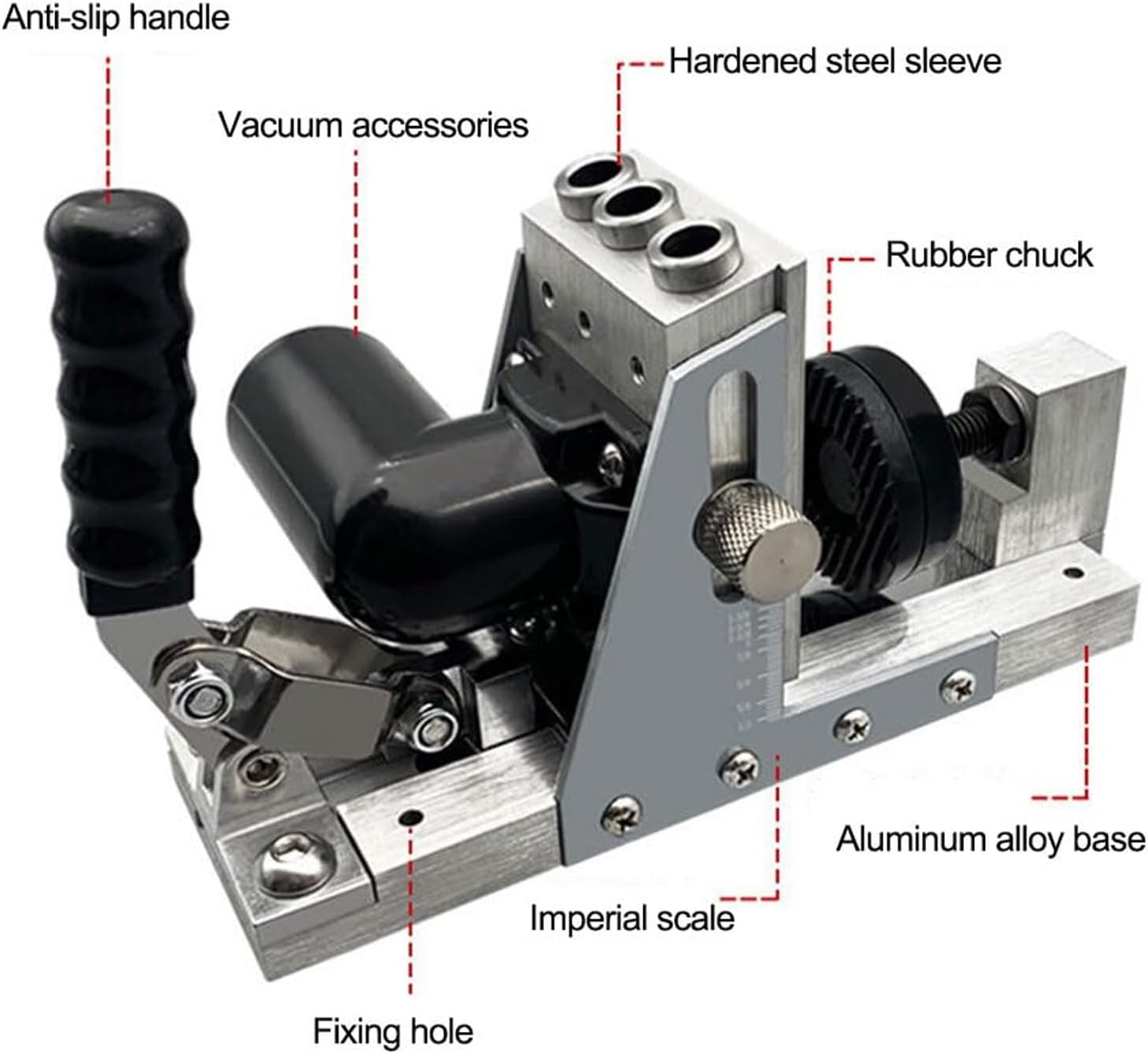 Specification: Item Type: Pocket Hole Jig Kit Material: Aluminum alloy Hole Diameter: Approx. 9.5mm / 3/8in How to Use: Follow the instructions in the manual. packing list: 1 x Pocket Hole Jig 1 x Vacuum Accessory 1 x Drill Bit 1 x Screwdriver Bit 1 x Limit 2 x Wrench 10 x Plugs 15 x Screws 1 x User Manual