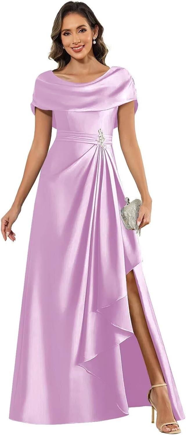 | Fabric Type | Cape Sleeve Satin Mother of the Bride Dresses with Slit |