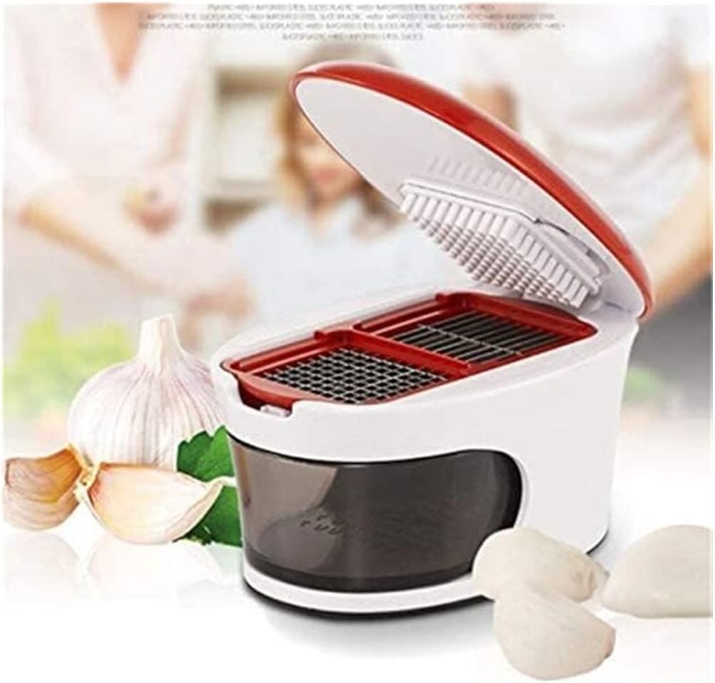 Warm Tips: Try to keep this item out of the reach of children to prevent accidents. Name: Manual garlic press Material: Stainless steel,ABS Color: As shown Size: 12*8*7.5cm Weight: 200g Uses: Garlic, ginger etc Package Including 1 * garlic masher Ease of Use: Avoid the stress by selecting a garlic mincer with an ergonomic, streamlined design that's easy to clamp and simple to operate, it won't make you feel like you're wielding a grip strengthener, perfect for commercial and home kitchen use. Multi-Purpose: This professional garlic squeezer is perfect for mashing fresh garlic or ginger into a fine paste to mashed potatoes, sautéed shrimp, meatballs, salad dressings or sauces, also available for other foods, like ginger, leafy herbs, chilies, seeds, and soft nuts etc. Better Family Life: The garlic press is well made with sleek nice look, not only a practical kit but also nicely fitting your neat kitchen. You can absolutely take it as a gift of love because it is really a good helper in kitchen, allowing you to save more preparing time and enjoy more happy family meal time.