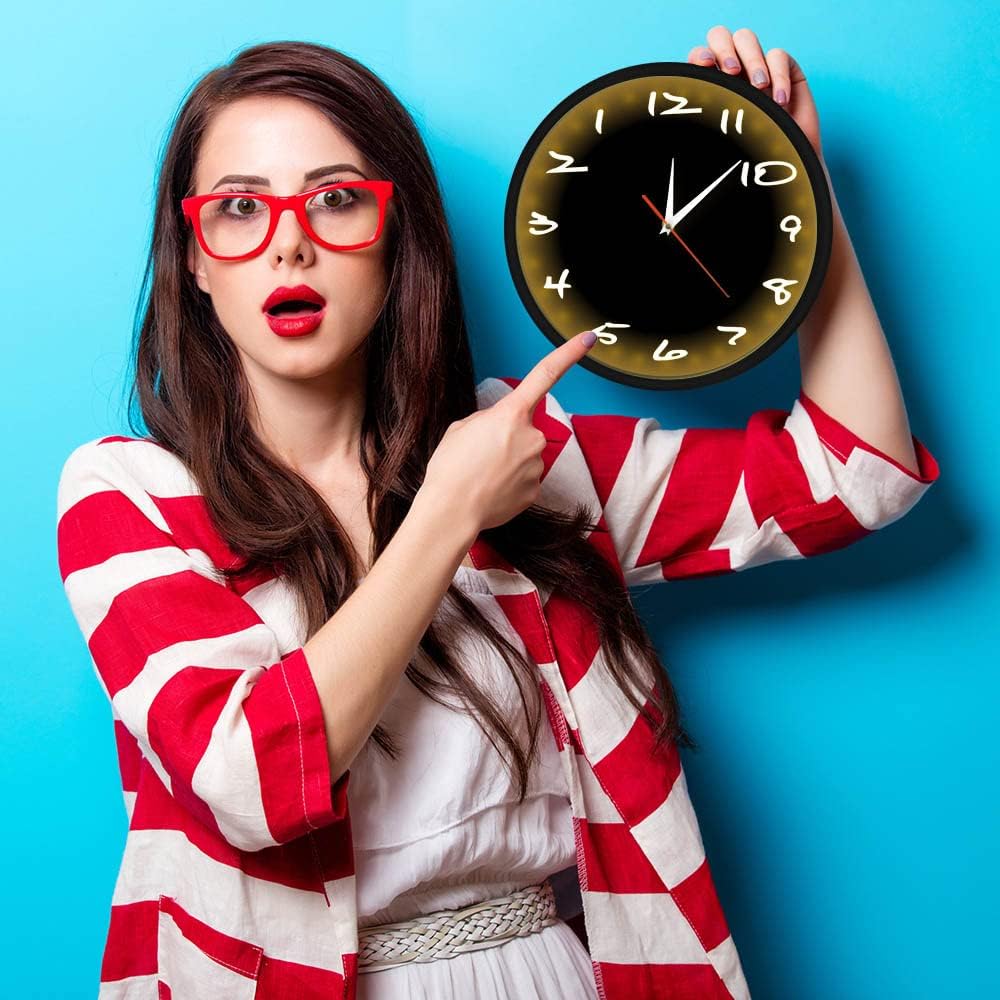 Sound Control Night Light Clock Nothing is more important in a bedroom, office, or living space than a 12" Wall Clock like this! Brilliantly designed to light up as you make a sound in the dark, you'll never have to worry about the time again. After 45 seconds, it will turn off and you're back to bed! Includes: 1 12" Clock Features: LED light Uses: Great for bedrooms, living rooms, dorm rooms, basements, and more! The grey moon LED clock is not only a clock, but also a night light with sound andoptical module, when in low light conditions and there's sound, the warm yellow LED lights will be lighted up for around 50 seconds. SPECIFICATION: Material: Metal frame + ABS Plastic Back Cover + Acrylic Clock Face + Metal Pointer Size:30x4.5x30cm (12"x2"x12in") Battery Type: 1AA Battery (not include) Light Sensing Device:4AA Batteries (not include) Watch Movement Type: Non Ticking Silent Quartz Description: Silent Wall Clock: Ultra-quiet and night light function, Ultra-quiet and no ticking, quiet movement, no ticking to ensure a good sleep or work Luminous wall clock: With light control and sound control LED night light function, it is convenient to watch the time, and it can also be used as a night light, multi-purpose, reliable quality Excellent quality: Stable quality, fine PP four-color printing clock face, good color fastness, no fading, warm yellow LED night light, No wiring required installation Craftsmanship: Hand-made, to create a more perfect home, add a touch of elegance, show the light luxury temperament, not only a pendant fashion clock, but also the charm of creating space art Scope of application: Wall clock adds more convenience to life, Great for home heating gifts, perfect wall clock for offices, classrooms, bedrooms, bathrooms and any room in the home Package Include: Sound Control Night Light Wall Clock *1