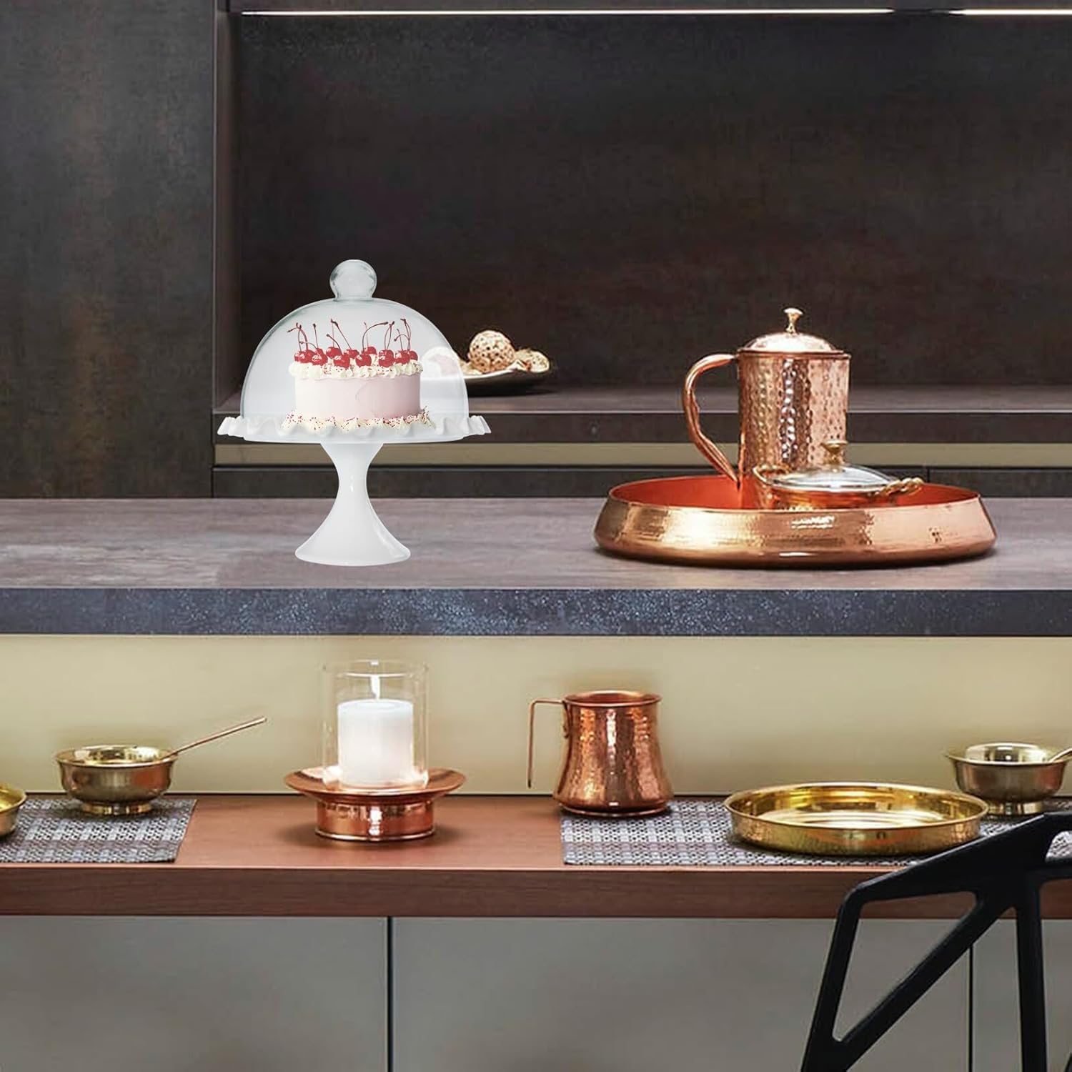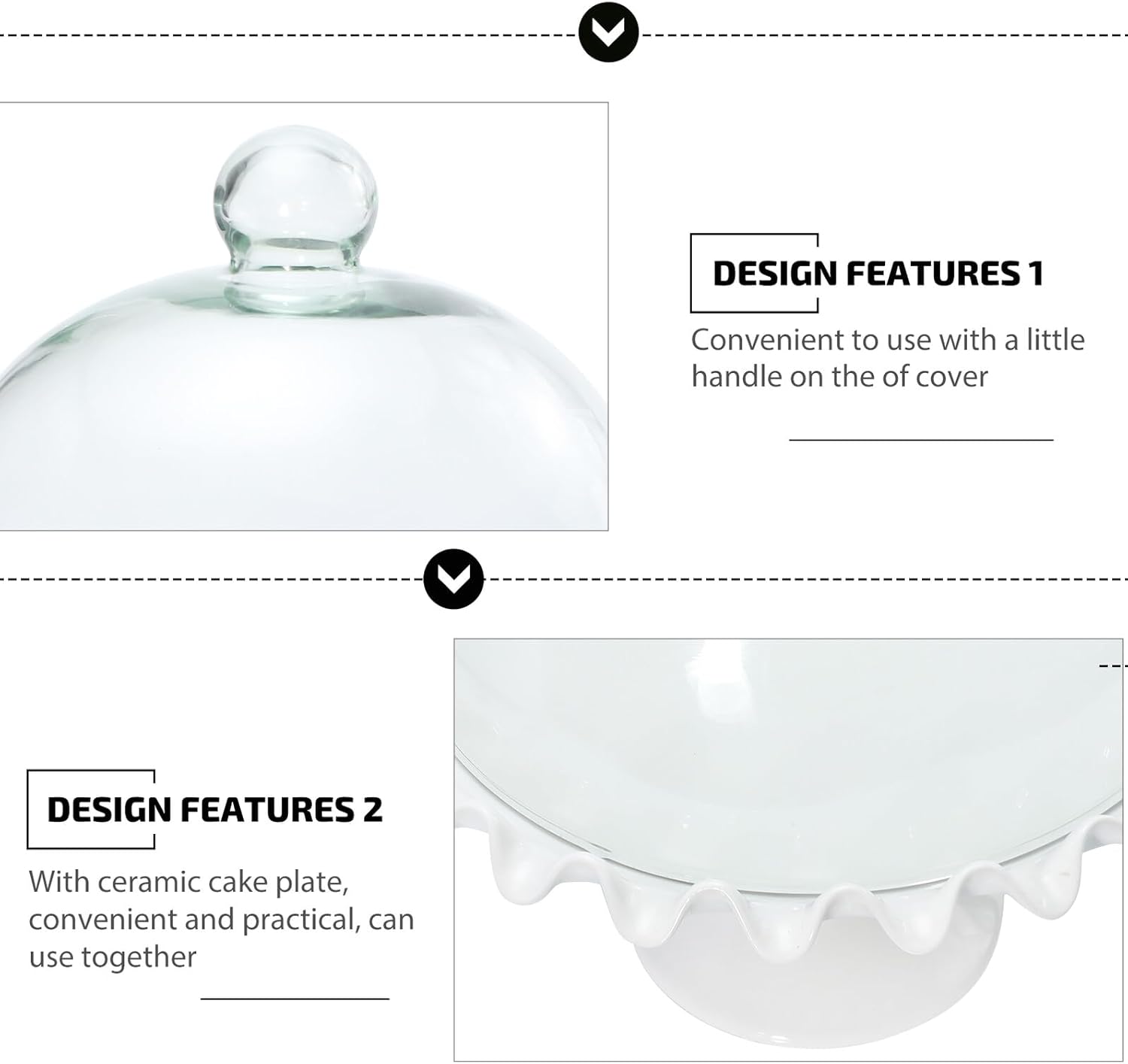 Package Include 1 x Glass Cover 1 x Ceramic Tray Characteristics -Material: Glass, ceramic. -Product Info:Cake glass cover -Size: About27.00X25.00X25.00cm/10.61X9.82X9.82in -Color: White - The handle on the glass dome cover is convenient to hold and move covered cake plate with dome glass. - A good kitchen tool, convenient and practical, easy to it up cake dome cover glass. - Adds elegance to desserts, cocktail and wine tasting parties, brunches, and more cake glass dome. - Clear lid design, can help display the food from multiple aspects before eating, greatly arouse the appetite of guests cake dome cover. - A great helper for protecting your food from dirt, , , and other dirty things dome food cover.Goods InformationFood Display is easy to use, which is very convenient for your daily life.glass cake dome You deserve to have one set.cake cover This is a transparent food cover with a ceramic plate.cake dome cover Are you still looking for a food cover? If so, you can