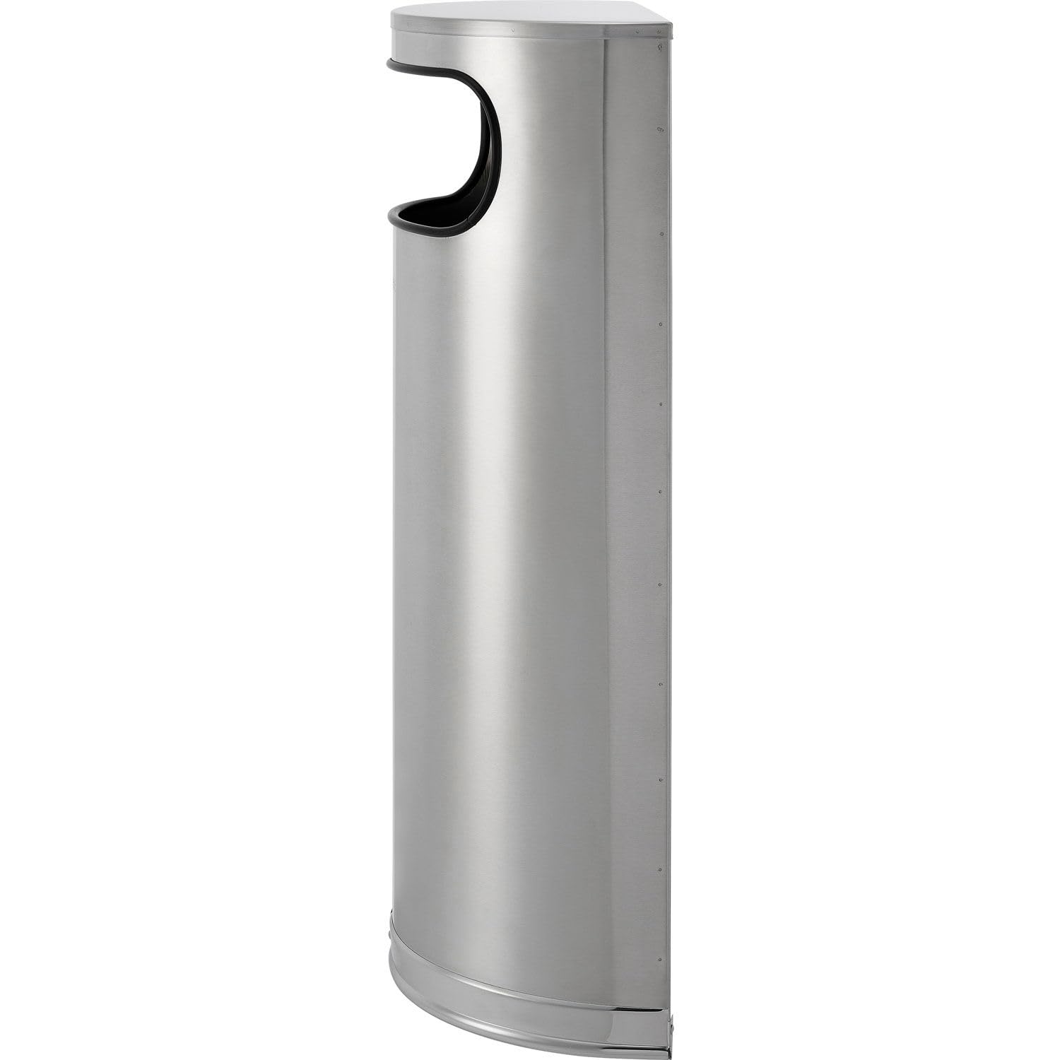 Easily blend trash receptacles into your environment with the Global Industrial™ Half Round Side Open Trash Can. Its matte finish and unique shape allow for seamless storage against the wall of any waiting area or bathroom — plus, its outward facing opening allows users to dispose of trash quickly in settings such as airports, shopping malls, or health clubs. The liner material is made of resilient and thick polypropylene to help endure high temperatures. 1 Year Limited Warranty. Measures: 32-5/16" H x 8-7/8" W x 18-1/8" L., Lot of 1