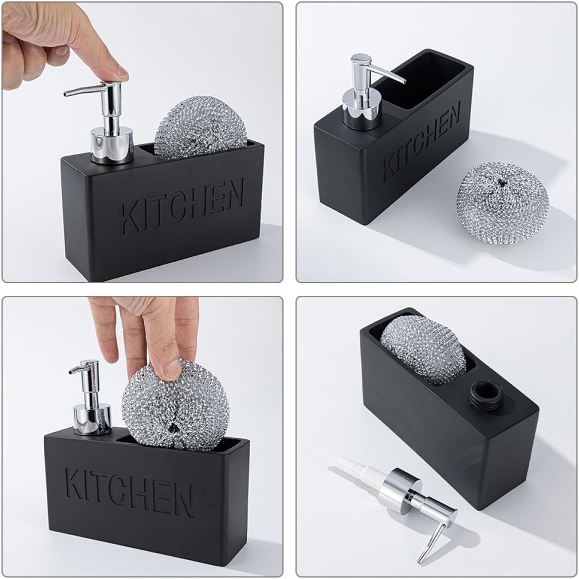 Package List 1 x soap dispenser 1 x washing ball Features -Material:Resin, plastic -Product Info:Soap bottle detergent -Size:17.00X9.00X6.00cm/6.68X3.54X2.36in -Color:Black -Made of safe and materials, this Lotion dispenser fine workmanship and durability. -Delicate and creative shape and color design, this Lotion dispenser is good for your home. -Convenient for hand soap replenishment and easy for cleaning, drying and reusing in your bathroom soap dispenser with tray. -Press pump type design, this Lotion dispenser is very convenient to use, portable and to carry soap soap dispenser. -Keep the liquid safe inside the bottle, and easy to apply the liquid. Storage rack can keep tidy liquid soap dispenser for kitchen.Goods Descriptionhand soap dispenser for kitchen The lotion dispenser is made of excellent and material, will to press the pump to use soap.soap container for kitchen sink Fine workmanship makes it beautiful and and shape design, can decorate your personality space, such as home, bathroom, toilet, office, hotel, etc