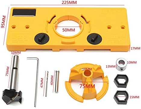 Description: Brand New and High Quality. Features: It can be used with standard 35mm Concealed Hinges and also available with 26mm hinges. This punch temporarily supports 46-47-48-52 mounting screw holes. Easy to use, suitable for homemade operation, do not need professionals. Specifications: Material: Plastic Color: Yellow Size: 225mm/8.9'' * 95mm/3.7'' * 25mm/1'' Type:Punching Device Packing Included: 1 pc x Hinge Jig Drill Guide 1 pc x Stand 1 pc x Hole Knife 1 pc x Limit Ring 1 pc x Positioning Rod 1 pc x Drill 1 pc x Wrench 2 pcs x Auxiliary Accessories Note: 1. Please allow 1-3 cm error due to manual measurement. 2. As different computers display colors differently, the color of the actual item may vary slightly from the above images, thanks for your understanding.