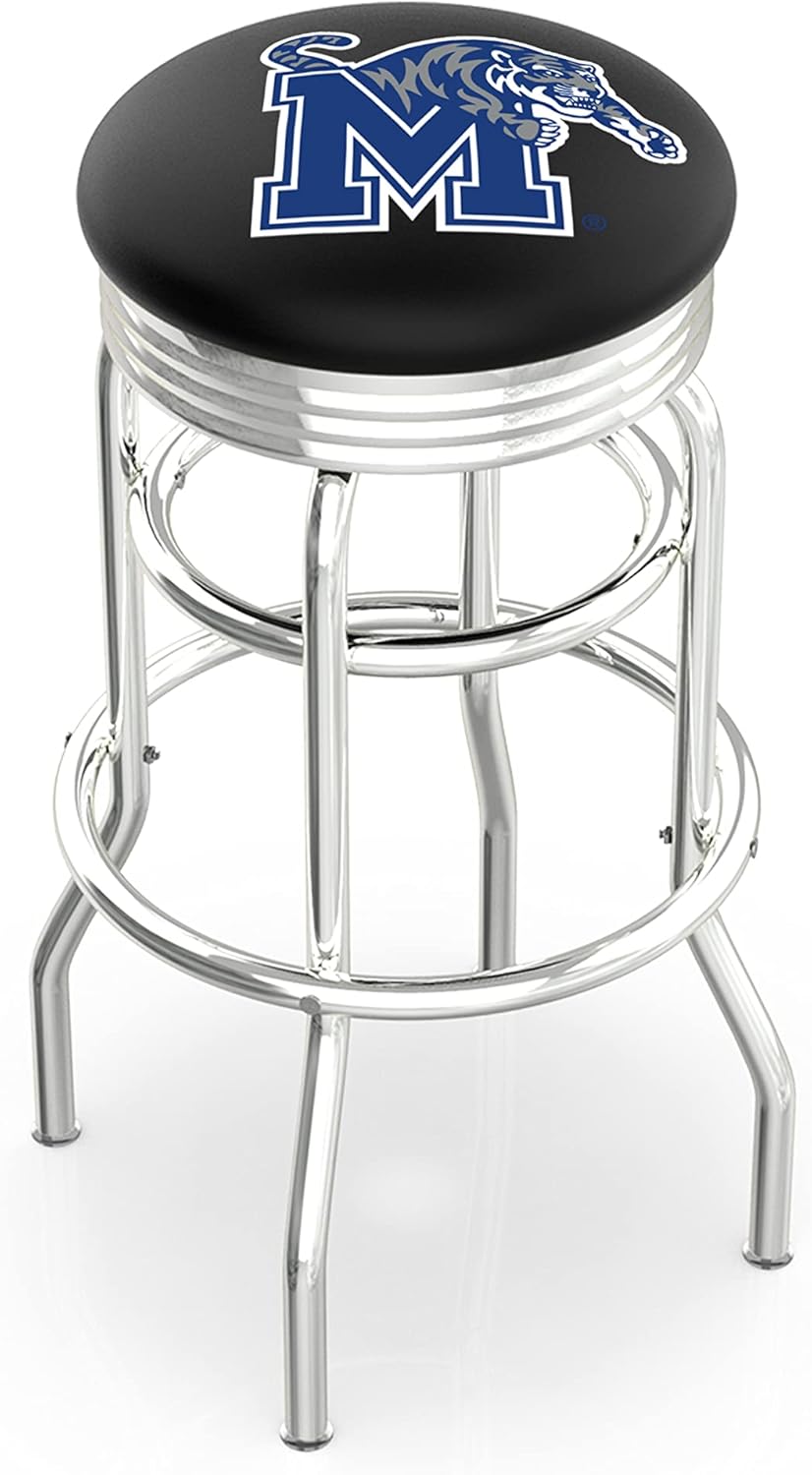Made for the ultimate sports fan, you will be proud to show where your loyalty lies with this impressive Officially Licensed stool from the Holland Bar Stool Co. This L7C3C double ring swivel stool has a style that brings you back in time featuring a 2. 75" chrome ribbed accent ring that conceals the swivel for a very clean look. A state of the art print process is used in applying specially formulated UV vinyl ink in numerous stages to produce a sharp, crisp, clear image to ensure a perfect reproduction of the logo. You won't find a higher quality logo stool on the market. The frame is made from commercial grade steel that is strong, durable, and triple chrome-plated to a long-lasting, rich finish capable of withstanding the abuse of your rowdiest of friends for years to come. The cushion seats are of the highest quality as well, utilizing a breathable, commercial grade vinyl. At the heart of the cushion is 2 1/2 inches of highly-dense, US made foam that provides maximum support and will not breakdown in a couple years. If you're going to finish your bar, game room, or man cave do it right- with a logo stool made in the USA by the Holland Bar Stool Co.