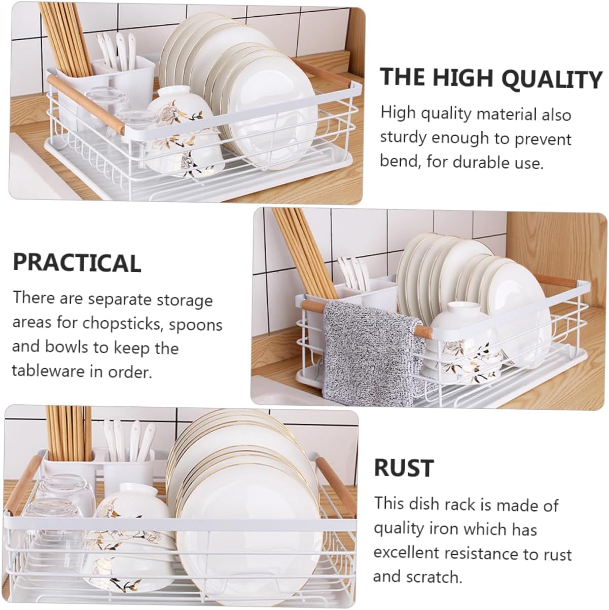 Package Include 1 x storage rack Features - Material: Iron Storage Case. - Size: 43.00x30.50x14.00cm/16.90x11.99x5.50inch Tableware Drain Rack. - Color: White Kitchen Storage Rack. - The tableware storage rack can be extended to be used on the counter, sink or Iron Storage Racks. - Selection of fine material solid frame body anticorrosion, thick on both sides of the bracket, stable and Dish Draining Rack. - Made of iron with high temperature processed painting, which is for long time use Dish Rack. - Multi-functional one-piece storage design for kitchen knives and forks, chopsticks, and dishes Iron Rack. - design, the bowl can be placed flat, vertical, easy to use Kitchen Storage Organizer.Goods DescriptionIron Rack to use.Tableware Storage is a and easy to store item.Cutlery Display Stand It is to , not rough, strong bearing load, and .Storage Racks Large capacity storage rack can place more things, which is easy to tidy, neat and beautiful
