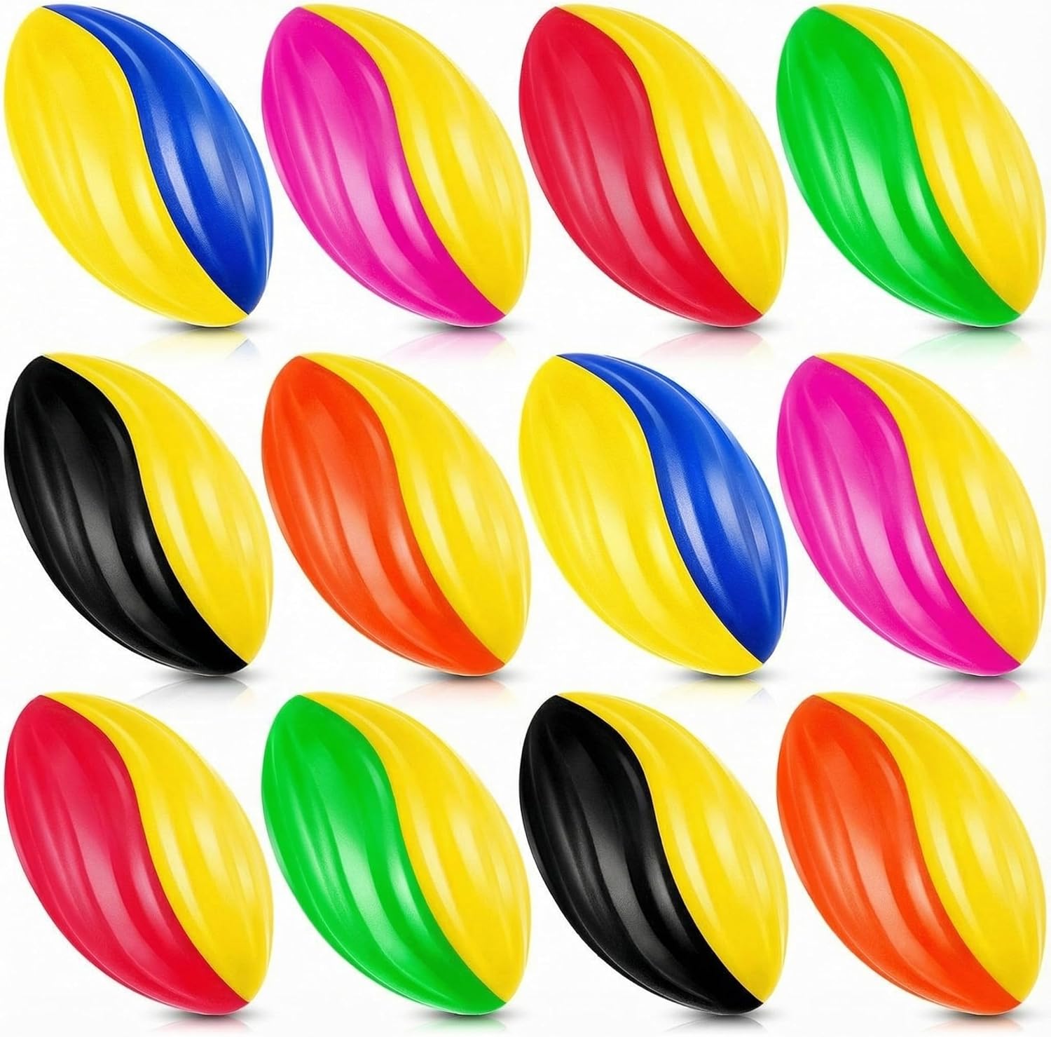 Features: Bright colors: These mini foam balls for kids feature with various bright colors, easy to attract kids attention, and add a vibrant and enjoyable atmosphere while playing. Soft and safe to play: Made of quality foam, the football for toddlers is soft and light, will not cause injury to kids, and your little ones can hold these small footballs easily, good to exercise their throwing and catching skills. Specifications: Material: foam Color: Black and red, Black and blue, Black and yellow, Black and orange, Black and green, Black and pink, Blue and red, Blue and yellow, Blue and pink, Blue and orange Size: about 5 inch Package includes: 100 x Mini footballs Notes: Manual measurement, please allow slight errors on size. The color may exist a slight difference due to different screen displays