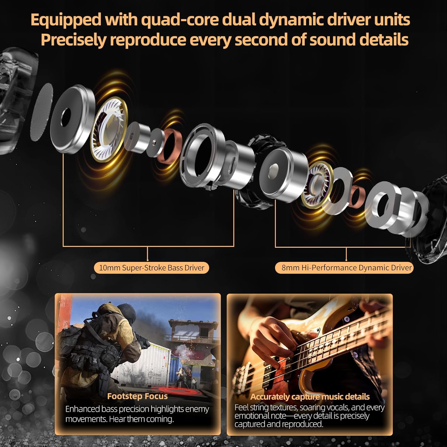 | Additional Features | Dual Driver Precision Crossover, Dual 6mm Professional Condenser Microphones, Detachable Cable |