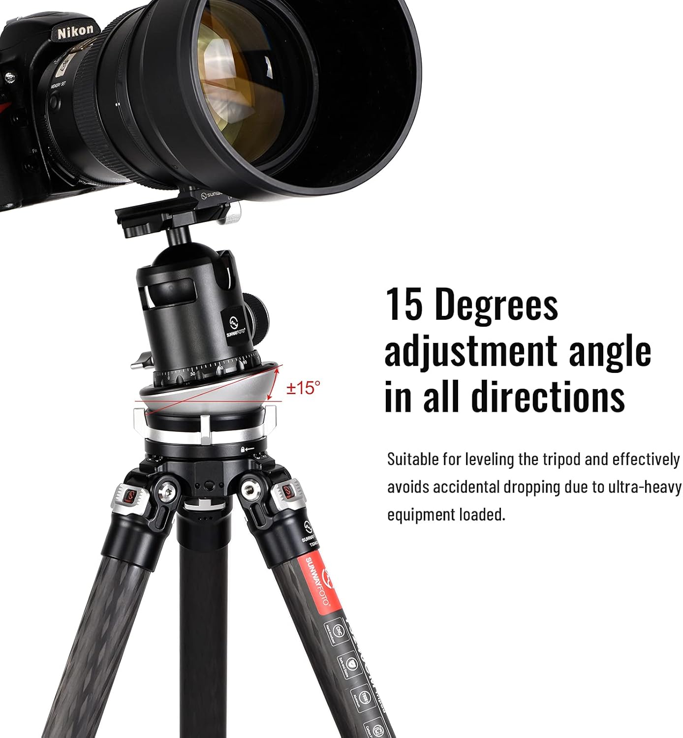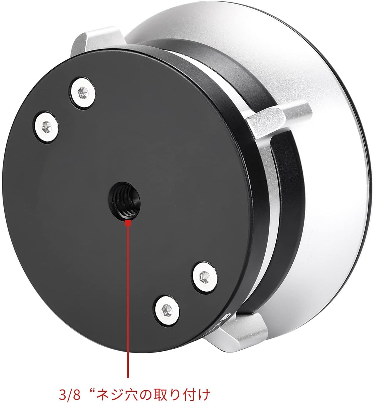 Model: LB-90 Main body Material: Aluminum T6061 Tilting Range: +/- 15° Camera Screw Thread: 1/4” Screw Thread Tripod Mounting Screw Thread: 3/8” Inner Thread Platform Diameter: 3.54in./90mm Base Diameter: 3.07in./78mm Height: 1.89in./48mm Weight:14.8oz/420g Max Load Capacity:55lb./25Kgs.