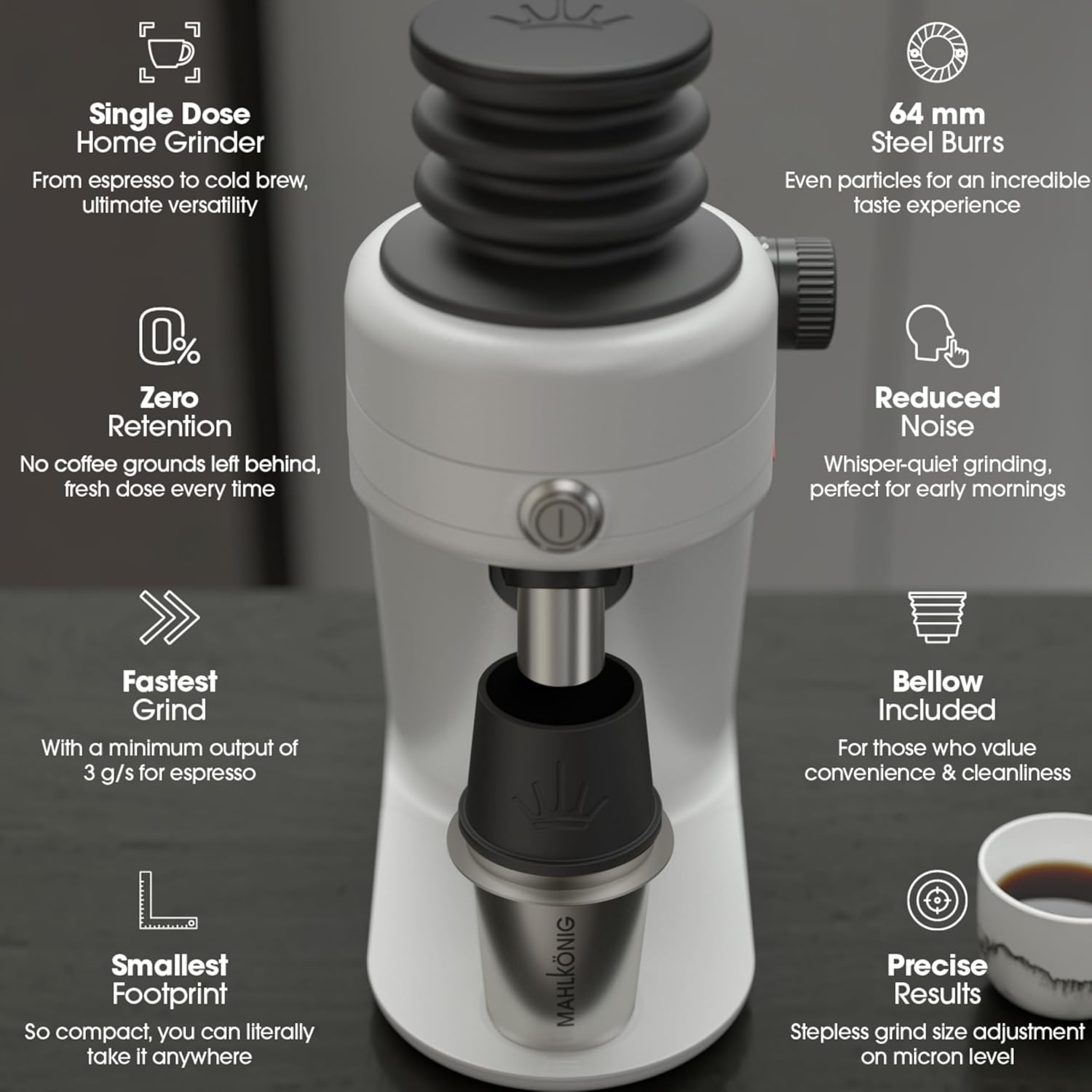 | Included Components | Anti-Popcorning (for smooth operations), Bellow (for easiest purging), Hopper Extension (for more capacity), Stainless steel dosing cup with funnel |