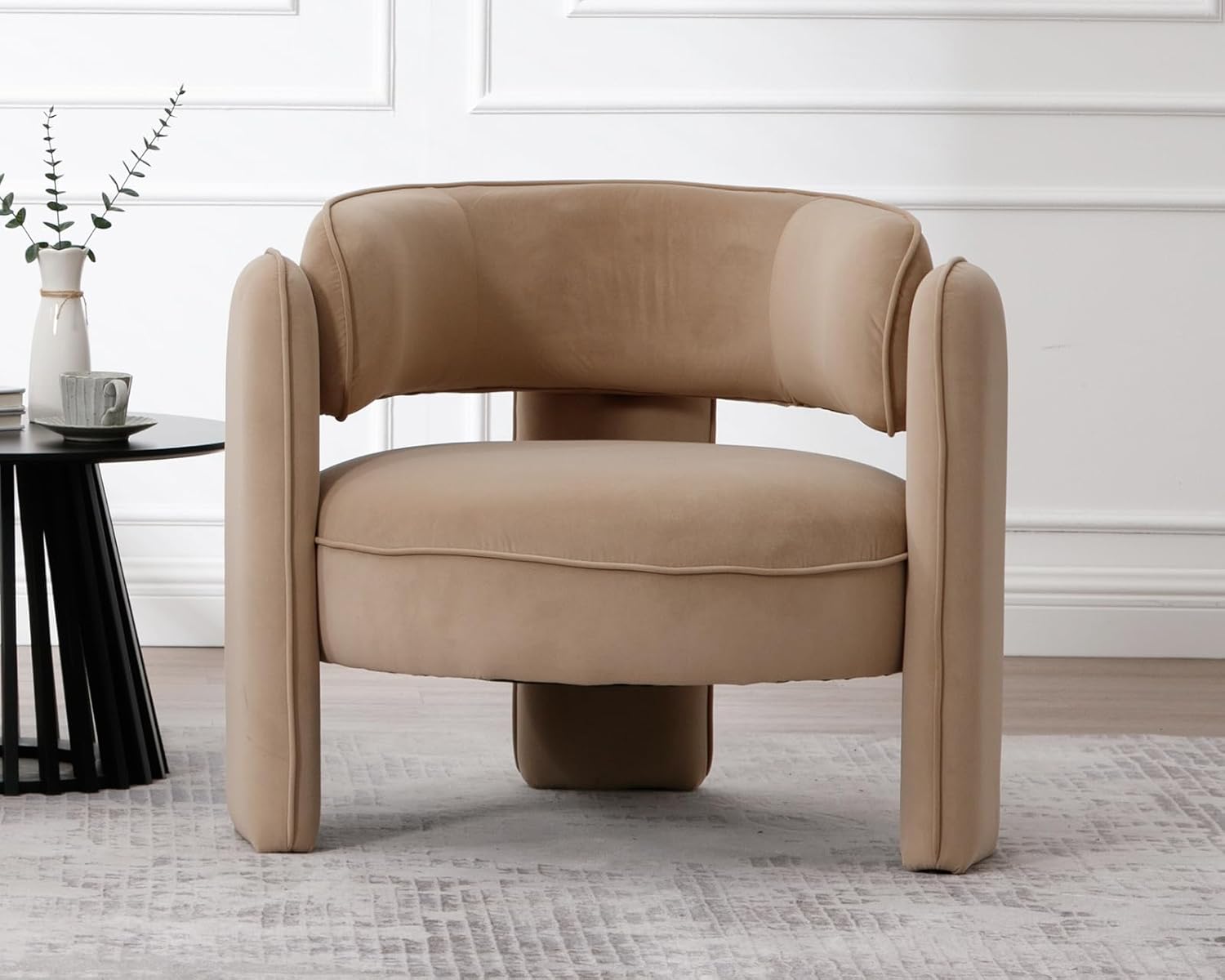 Bring modern style to any space with this elegant armchair. It features a barrel frame back with simple but soft seat, supporting you in all the right places. Nothing is more relaxing than to ergonomic back on this accent chair with a cuppa or your favorite book by the end of a busy day. It’s a good addition to your home living room, bedroom, also can be a good choice for company reception room and so on