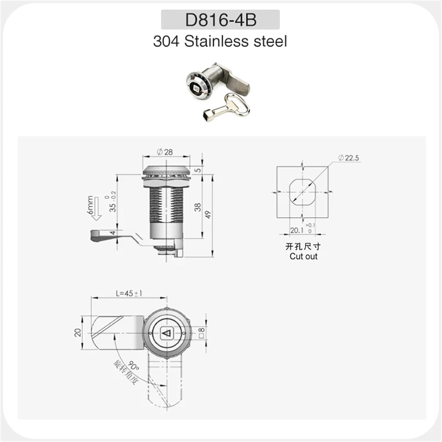 LatchMS816-4B Rotary Latch Lock 304 Stainless Steel Closed Tension Type Four-Corcner Lock Core 1Pcs
