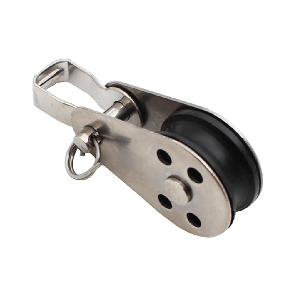 Professional Marine Swivel Pulley - Superior Performance for Demanding Applications Engineered to excel in the most challenging marine and outdoor environments, our swivel pulley block combines corrosion-resistant stainless steel with precision-molded nylon sheaves for unmatched durability and smooth operation. The 360° swivel design ensures tangle-free operation while the deep-groove sheave provides secure rope retention. Whether you're upgrading sailboat rigging, installing shade systems, or enhancing outdoor equipment, this heavy-duty pulley delivers reliable performance when it matters most. Key Features & Benefits Superior Corrosion ResistanceManufactured from 316 stainless steel with enhanced molybdenum content for maximum saltwater corrosion resistanceNylon sheaves provide self-lubricating, quiet operation that protects rope surfaces from abrasionAll metal components undergo rigorous salt spray testing to ensure durability in marine environmentsPolished surface finish minimizes marine growth attachment and simplifies cleaningAdvanced Engineering Design360° swivel eye prevents rope twisting and reduces wear on both pulley and ropeDeep-groove sheave design securely accommodates 4-11mm ropes without jumpingQuick-open side plate enables tool-free rope threading and maintenancePrecision bearing system ensures smooth operation under heavy loads Applications Marine & Sailing ApplicationsSailboat rigging and control systemsDeck equipment and hardwareMooring and docking systemsSmall boat control upgradesOutdoor & Recreational UseShade sail tensioning systemsCamping tarp and hammock setupsKayak and canoe accessoriesOutdoor canopy and awning systemsIndustrial & CommercialTemporary lifting applicationsAgricultural and industrial shade systemsConstruction safety nettingEvent tent and marquee setupsUpgrade your equipment with confidence! Our marine swivel pulley delivers professional-grade performance for your most demanding applications. Backed by quality assurance and customer support.