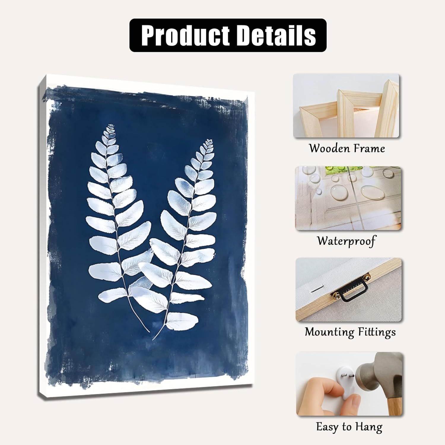 Navy Blue Leaves and Coastal Coral Set of 3 Canvas Art Prints, Minimalist Botanical Wall Decor for Living Room and Bedroom, Abstract Coastal Nature Artwork Product Features: Bring natural beauty and a calming vibe into your home with this stunning 3-piece Navy Blue Leaves and Coastal Coral Canvas Wall Art. Featuring an elegant design of navy blue leaves intertwined with coastal coral accents, this triptych artwork adds a touch of tranquility and nature to your living room, bedroom, or office. The soothing color palette of navy blues and coastal elements creates a serene atmosphere, perfect for enhancing any modern, coastal, or minimalist décor. Printed on premium, fade-resistant canvas, this artwork guarantees long-lasting vibrancy and sharp details. The high-quality material ensures that the piece maintains its beauty and vivid colors for years to come, making it an ideal choice for anyone seeking art that stands the test of time. Whether you're decorating your home or office, this canvas wall art serves as a timeless and elegant addition to any space. Available in multiple sizes to suit different spaces: (1)12x18 canvas wall art set of 3 (2)16x24 canvas wall art set of 3 (3)24x36 canvas wall art set of 3 Package includes: 1 × Navy Blue Leaves Canvas Wall Art Set of 3 1 × Suspension accessory package Notes: 1. Please allow slight size variations due to manual measurement. 2. Colors may vary slightly due to different screen settings. 3. Before purchasing, please measure your wall dimensions to ensure the perfect fit. After-sales Service: We are dedicated to customer satisfaction, providing responsive and comprehensive after-sales support. If you have any concerns about your purchase, please contact us—we are always here to help and ensure your satisfaction.