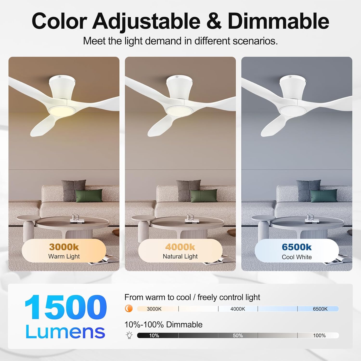 | Special Features | 3 Color Temperature, DC Reversible Motor, Dimmable, Remote Controlled, Timer |