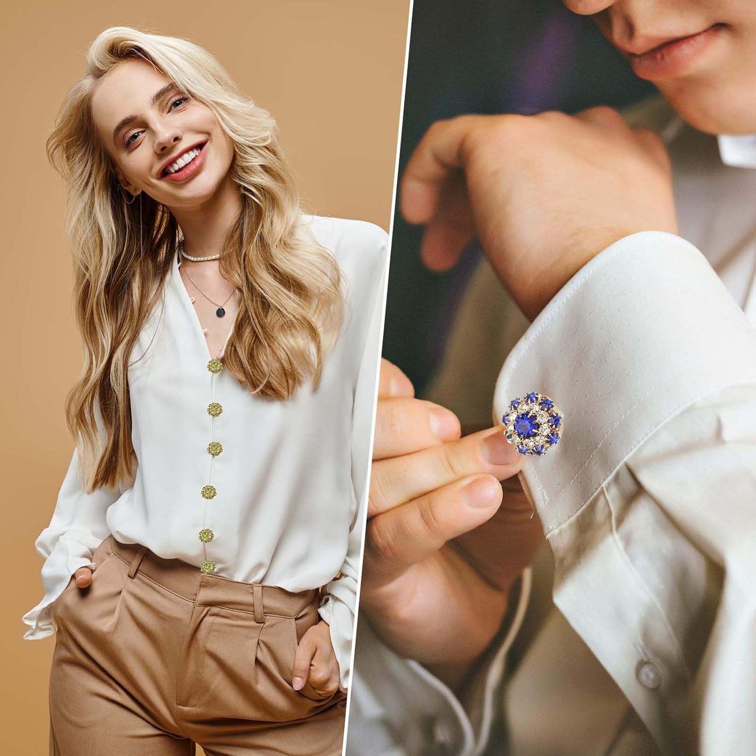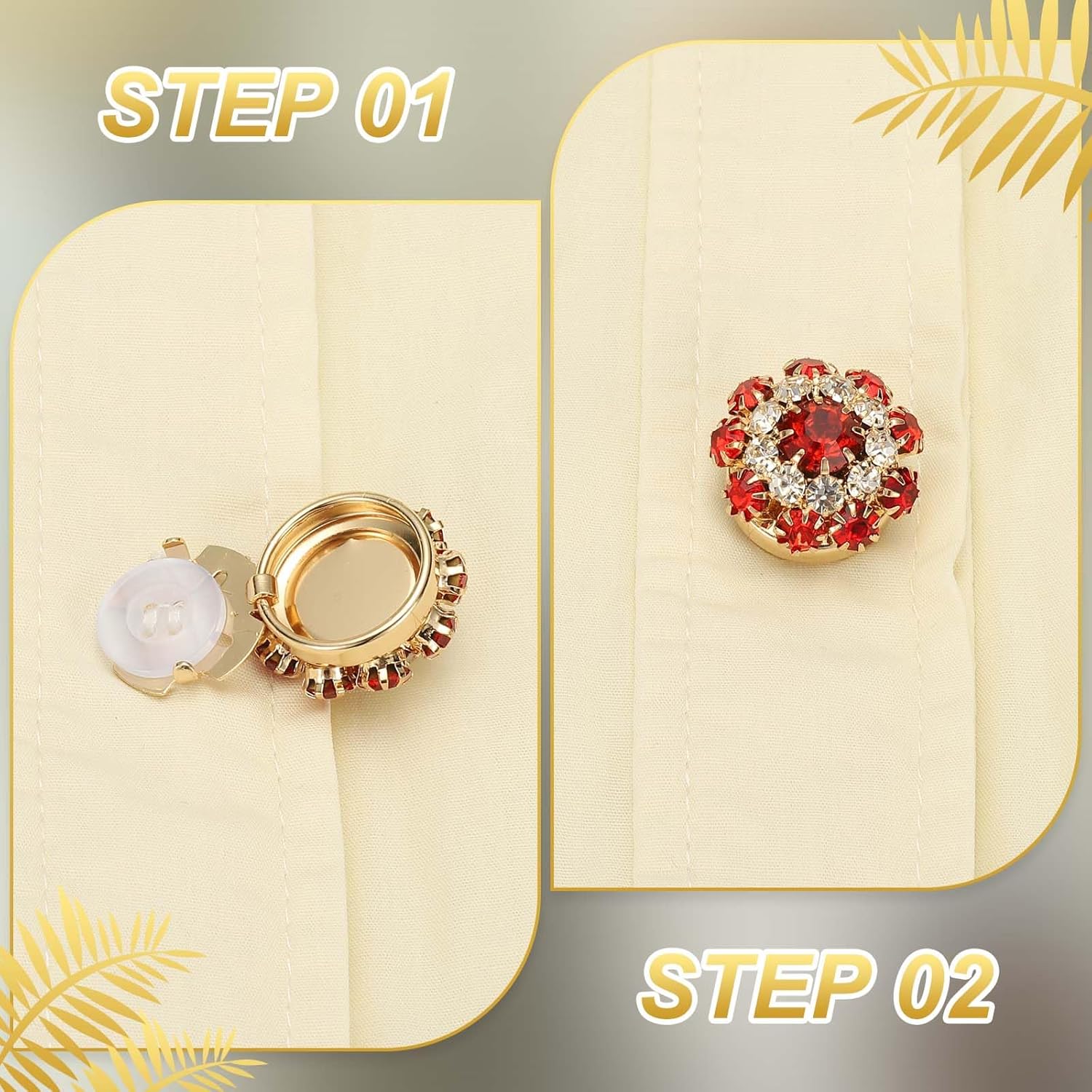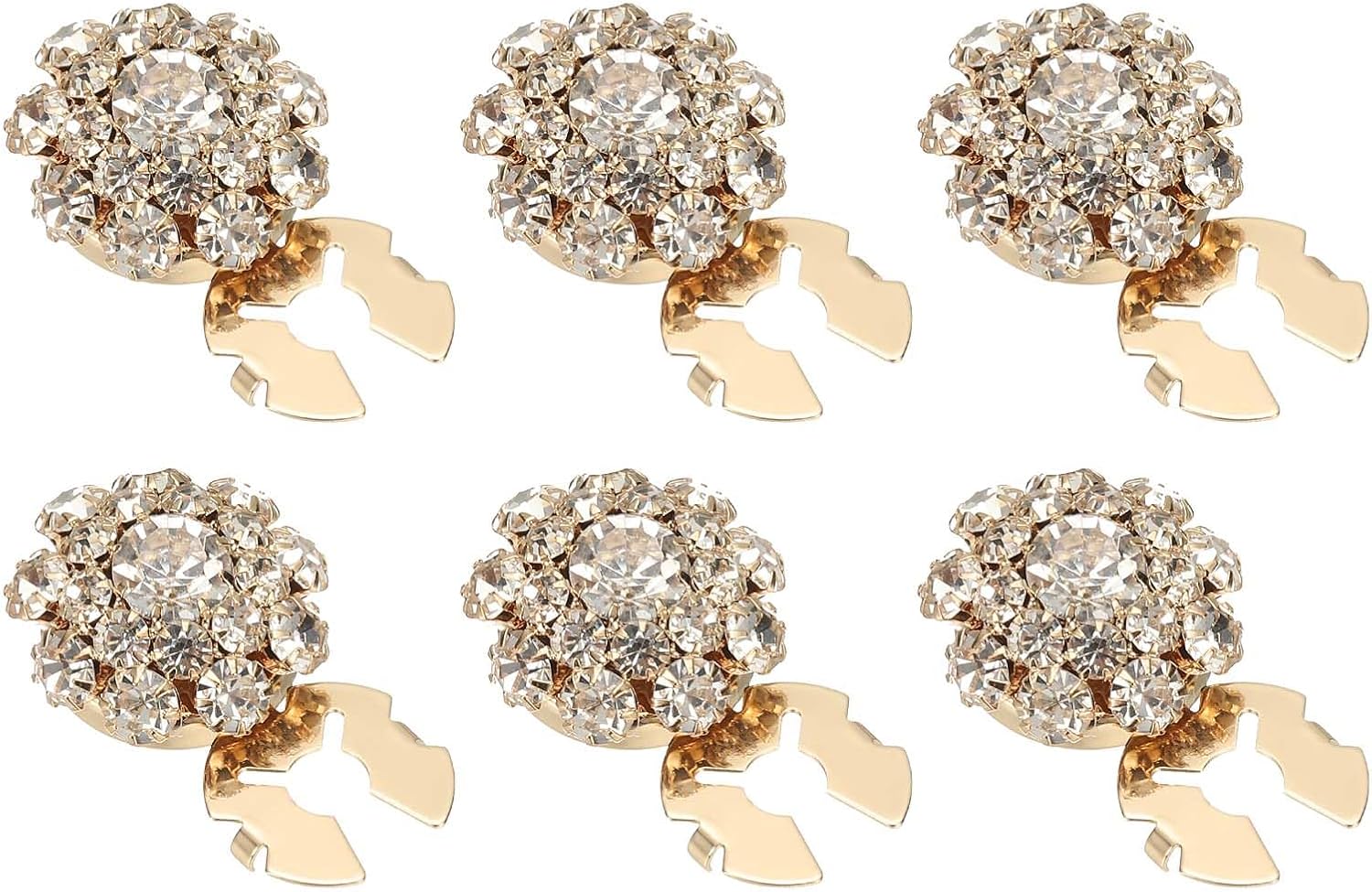 Decor your outfits with our Rhinestone Button Covers, great for dresses, suits, wedding attire, and more. Enhance casual blouses, elegant coats, and special occasion wear with a touch of glamour. Our Rhinestone Button Covers are versatile and can also be used for DIY projects, decorations, and accessory making. They make creative gifts for festivals or parties.Specification:Color: Gold Black;Material: Copper, Rhinestone;Diameter: 17.5-21mm / 0.69-0.83 inch;Height: 13.5mm / 0.53 inch;Packing List: 6 x Rhinestone Button CoversAdvantage:Crafted from quality copper and decorated with sparkling rhinestones, these button covers resist corrosion and ensure durability. The special flower design catches the eye, adding sophistication to any attire.Instruction:Easy to use, simply open the bottom of the rhinestone button cover, clip onto your existing button, and close it. Attach in just a few seconds without removing the old button. Reusable and easy to remove for cleaning.Note:Due to different monitors, product colors please refer to the actual product. Please pay attention to the size before purchasing.