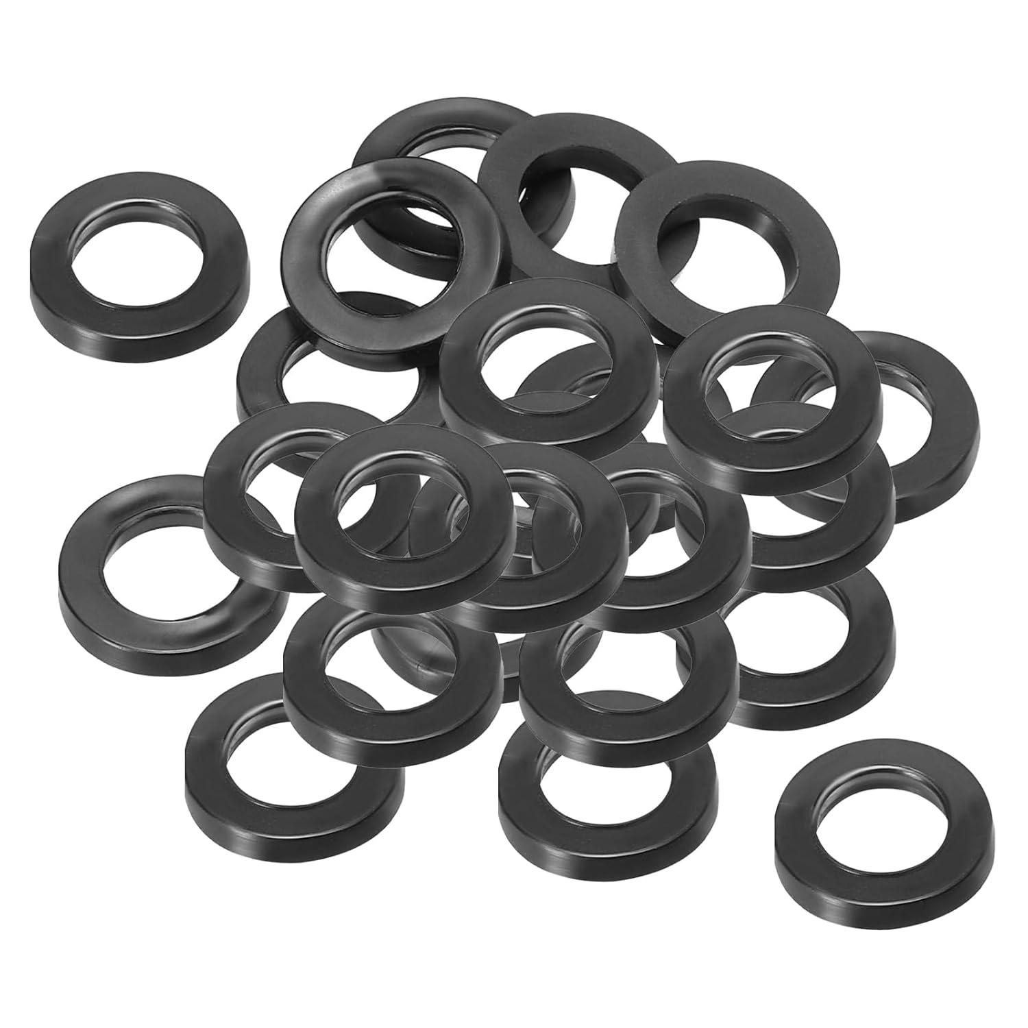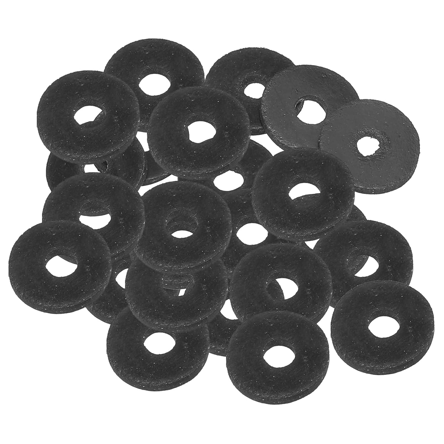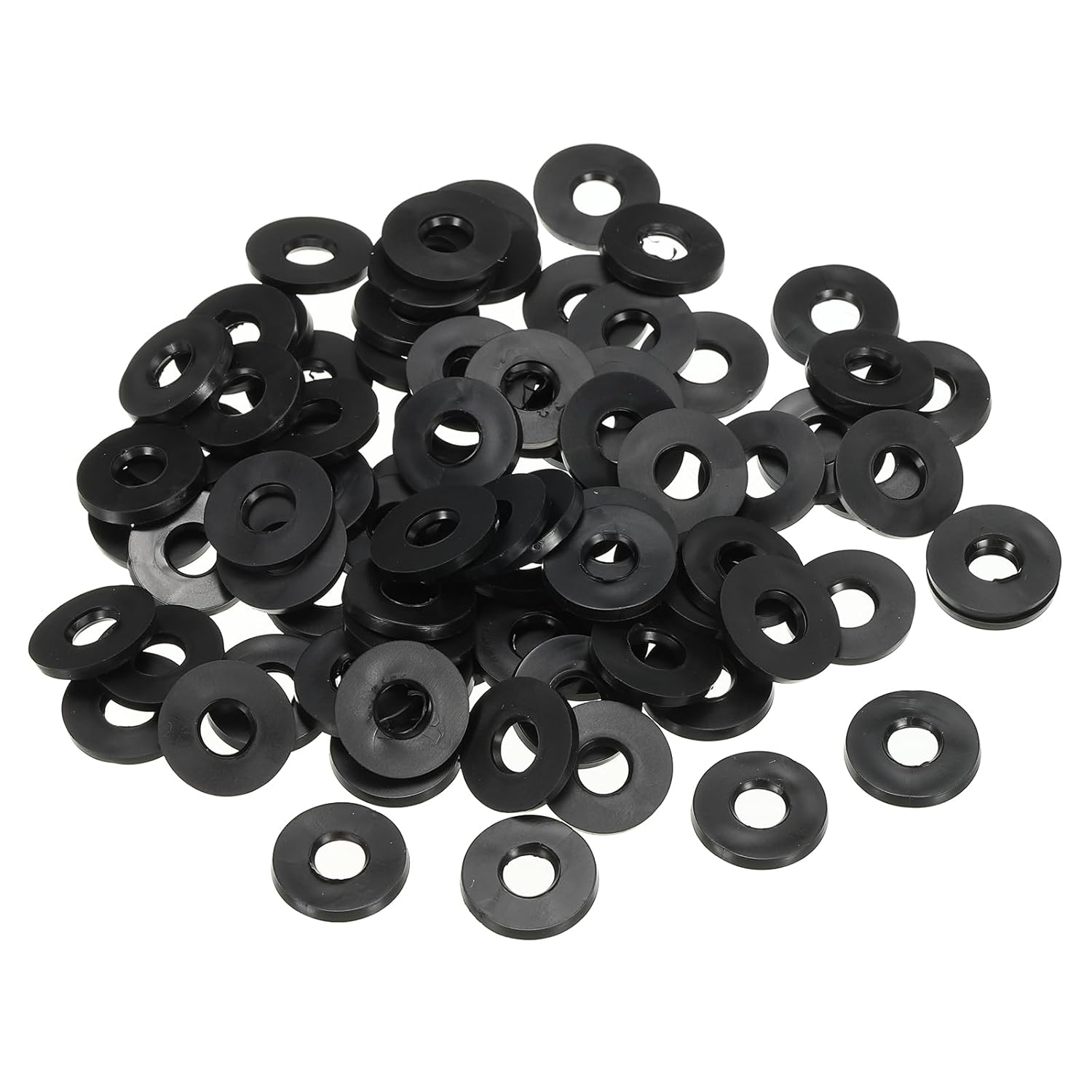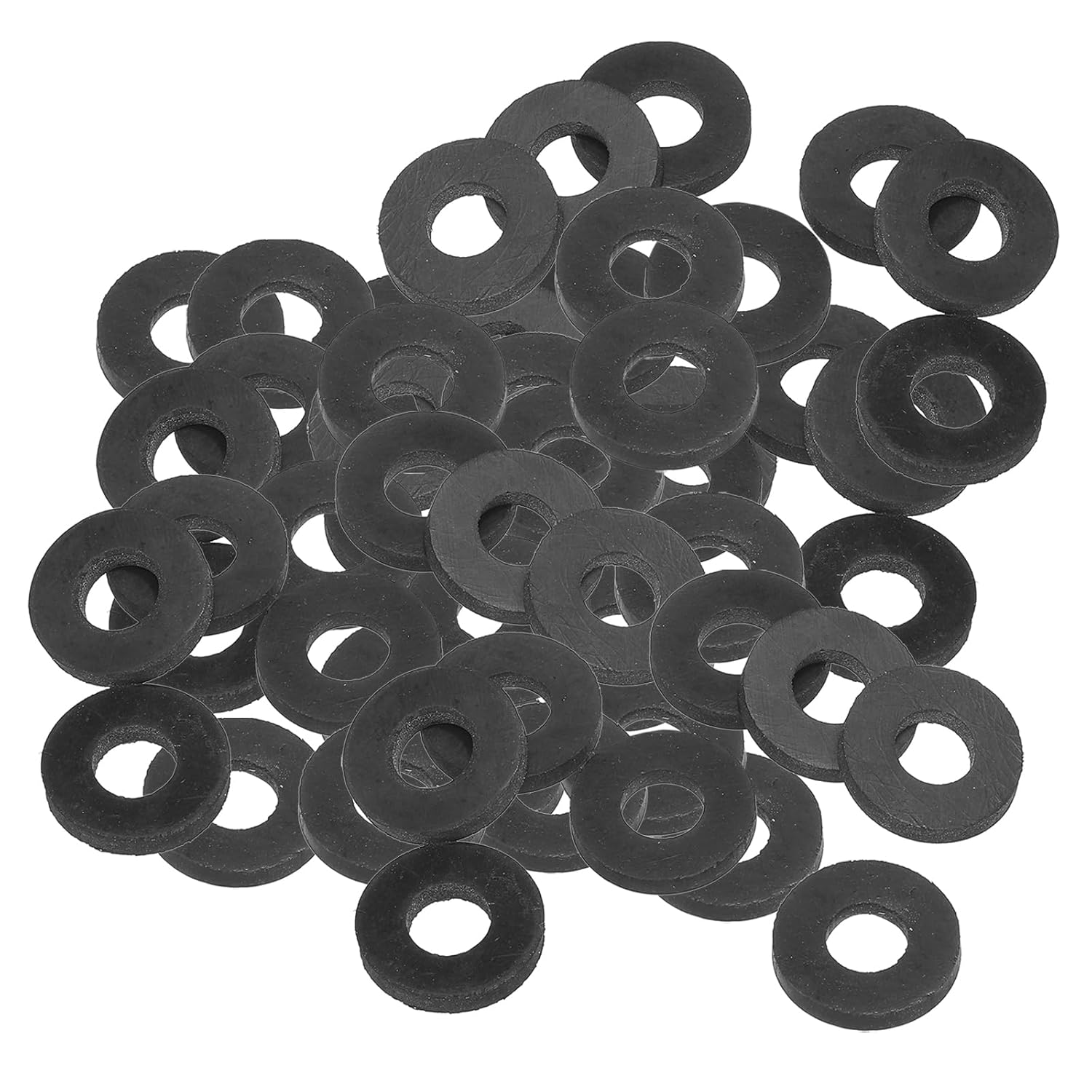 Rubber flat washers are widely used in home installations, and household appliances which with bolted connections. It can also be used as a sealing ring for faucet pipes, hose nuts or garden watering tool accessories.SpecificationColor: BlackMaterial: RubberInner Diameter: 16 mm / 0.63 inchOuter Diameter: 27 mm / 1.06 inchThickness: 3 mm / 0.12 inchPacking List: 120 x Rubber Flat WashersAdvantageMade of flexible rubber features high temperature, wear-resistant and corrosion-resistant, strong sealing, and insulation. Rubber allows for more effective sealing of harder materials or irregular surfaces.Rubber washers can be used for sealing applications, i.e. in water, oil, air, etc. They can also be used for cushioning, reducing pressure and friction, increasing the contact area and providing a support surface for fasteners.When screwing a nut onto a nylon or glass item, it is recommended to use a rubber spacer as a cushion in order to prevent its surface from tearing.InstructionPlace the washer between the item to be fixed and the bolt, and tighten the bolt.NOTE:Please choose an appropriate diameter so as not to affect its sealing performance.