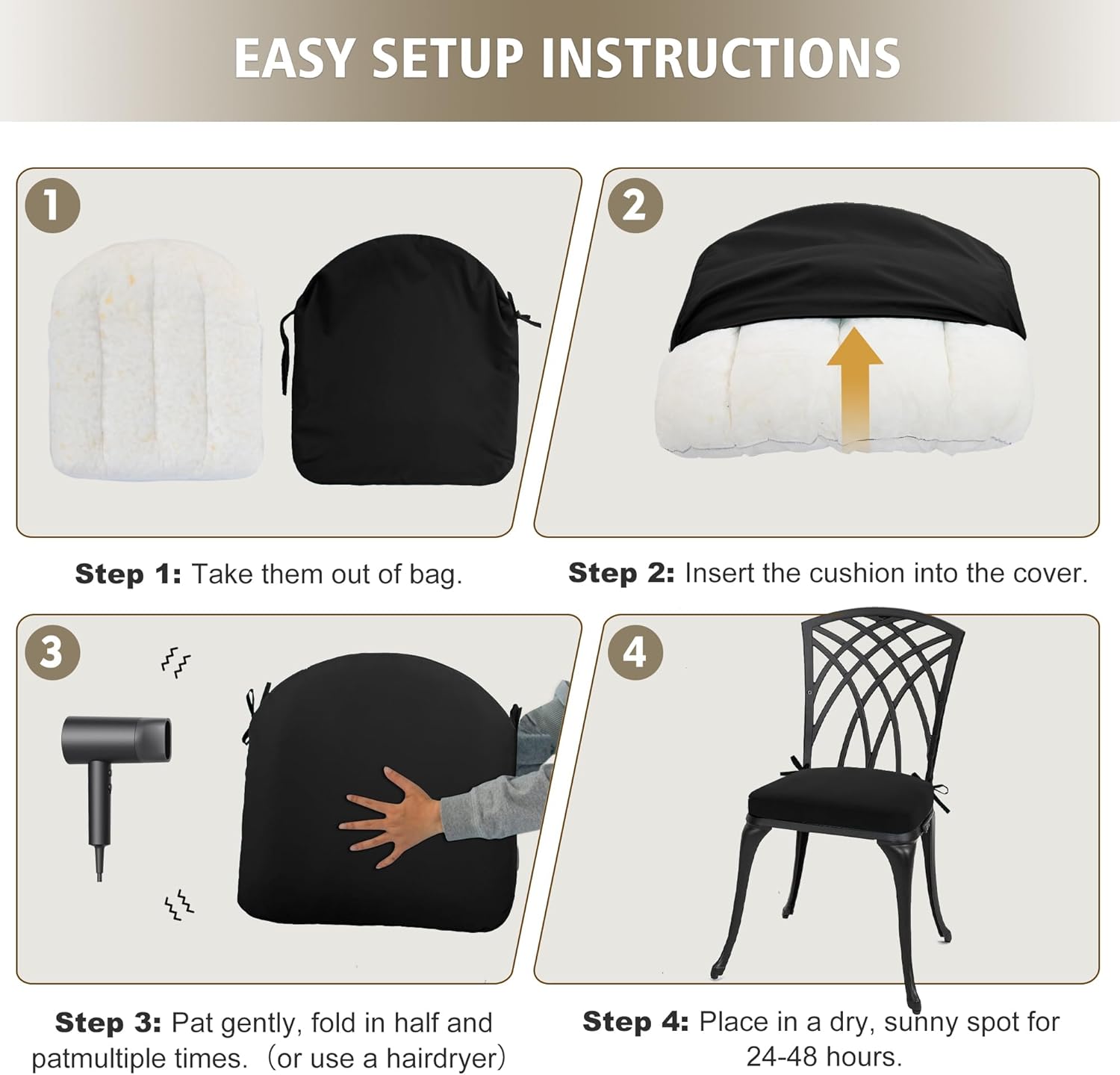 Elevate your outdoor seating with Ottowood Rounded Corner Patio Chair Cushions, thoughtfully designed to bring comfort and elegance to your patio chairs, lawn furniture, or outdoor dining sets. These 19" x 19" cushions with soft rounded back corners are a versatile choice for refreshing the look and feel of your outside seating area. Each cushion is generously filled with 28D high-density shredded memory foam that offers lasting support and relieves pressure from your lower back and hips—making these pads ideal for hours of relaxed dining or lounging on the patio. Whether you're hosting a weekend BBQ or enjoying a quiet morning coffee, Ottowood cushions enhance every moment outdoors. Made with 250g waterproof polyester fabric, these seat replacement cushions are built to handle the elements—resisting light rain, splashes, and fading from extended sun exposure. The elegant design pairs beautifully with wicker furniture, wooden patio chairs, and deck dining sets. Equipped with secure tie-down straps, each cushion stays neatly in place even on slick or uneven surfaces. The removable covers are machine-washable, making cleanup simple and effortless. Available in 2-pack and 4-pack configuration and timeless shades like sage green, navy, and cream, Ottowood rounded corner cushions are a practical upgrade for any outdoor furniture set—perfect for lawn chairs, outdoor sofa pads, or patio dining seat replacements.