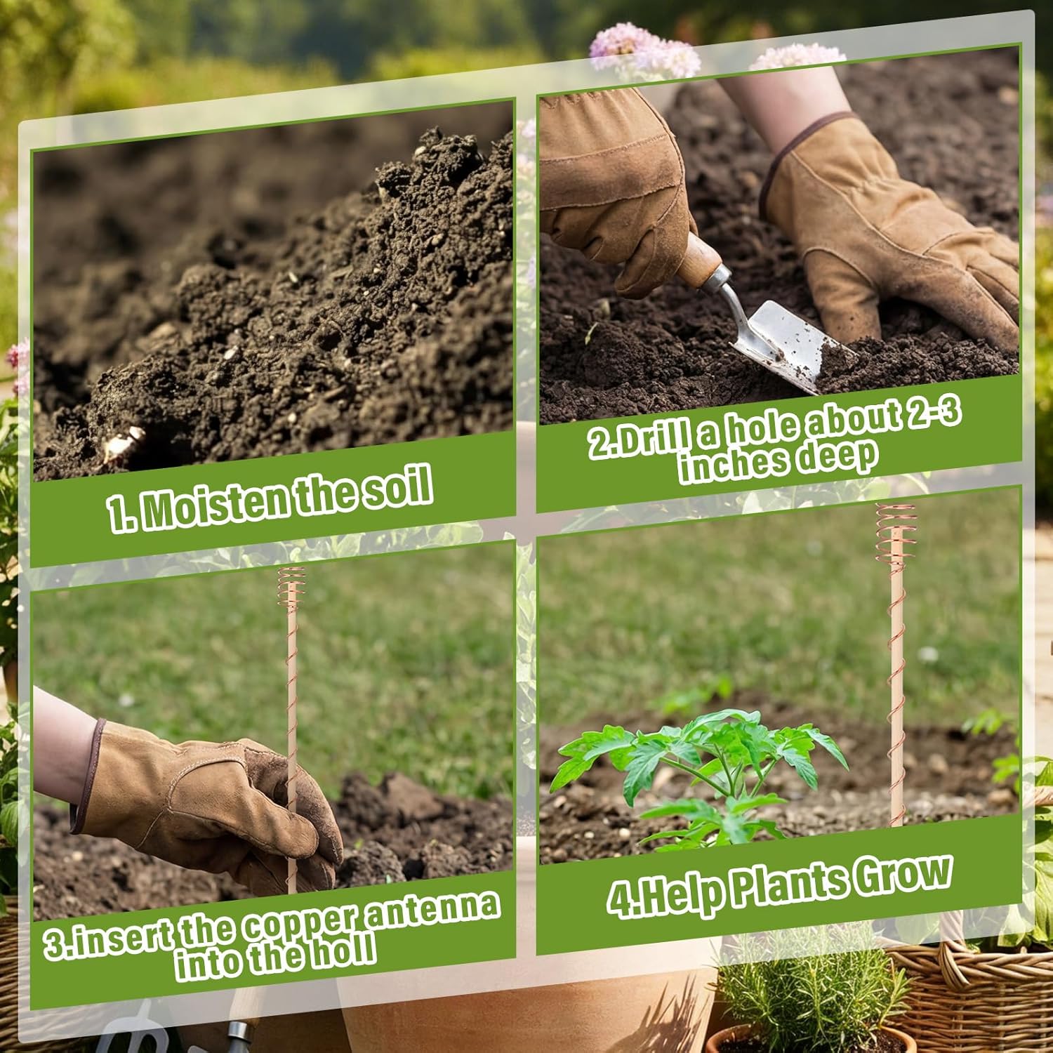 Features: Versatile application for all plant types: Suitable for various plant species, from succulents to fruit trees, our copper garden stakes provide universal benefits. Whether you're nurturing a small potted herb or a sprawling outdoor garden, our stakes support every plant type with undeniable efficiency. Reliable solution for challenge: Meet your garden's demands confidently with copper rods for garden designed to endure. From wind swept conditions to sunny climates, rely on our stakes' strength and durability to maintain optimal plant care, ensuring a flourishing garden throughout the seasons. Specifications: Material: copper Size: 24'' Package includes: 6 x Large electroculture plant stakes Notes: Manual measurement, please allow slight errors on size. The color may exist a slight difference due to different screen displays