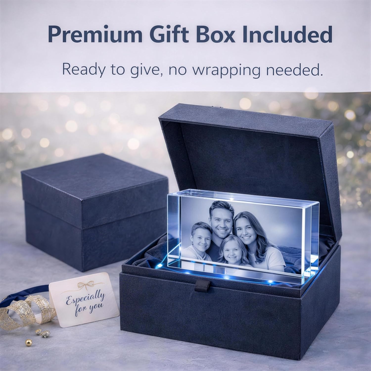 | Other Special Features of the Product | 3D Laser Photo Engraving, Durable Scratch-Resistant Engraved Design, High-Definition Optical Clarity, Optional LED Light Display Upgrade, Personalized Photo Customization |