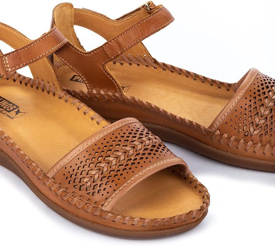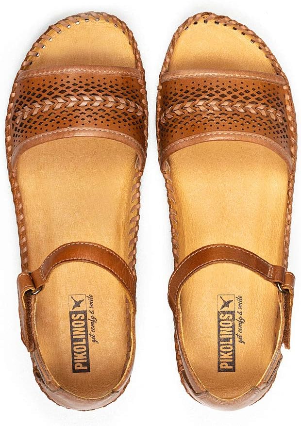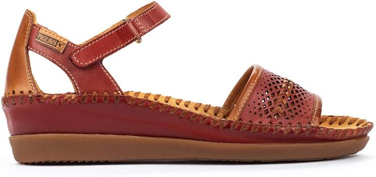 Show off your sensational style with the Pikolinos® Cadaques W8K-1875 sandal. The two-tone leather upper boasts punch-out details and a contrasting chevron pattern for a subtle pop. Adjustable hook-and-loop closure at the instep.Breathable leather lining and cushioned leather insole.Molded wedge midsole.Durable man-made outsole.Imported.Measurements: Heel Height: 1 in Weight: 9 oz Platform Height: 1⁄2 inProduct measurements were taken using size 38 (US Women's 7.5-8), width B - Medium. Please note that measurements may vary by size.Weight of footwear is based on a single item, not a pair.