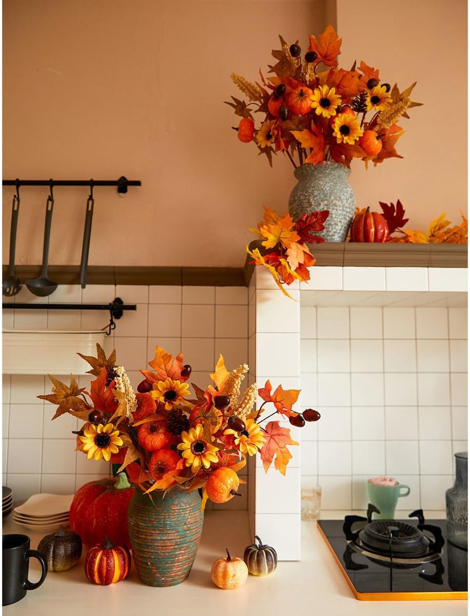 Autumn Artificial Maple Leaves Fake Pumpkin Acorn Branch For Thanksgiving Day Harvest Festival Decor