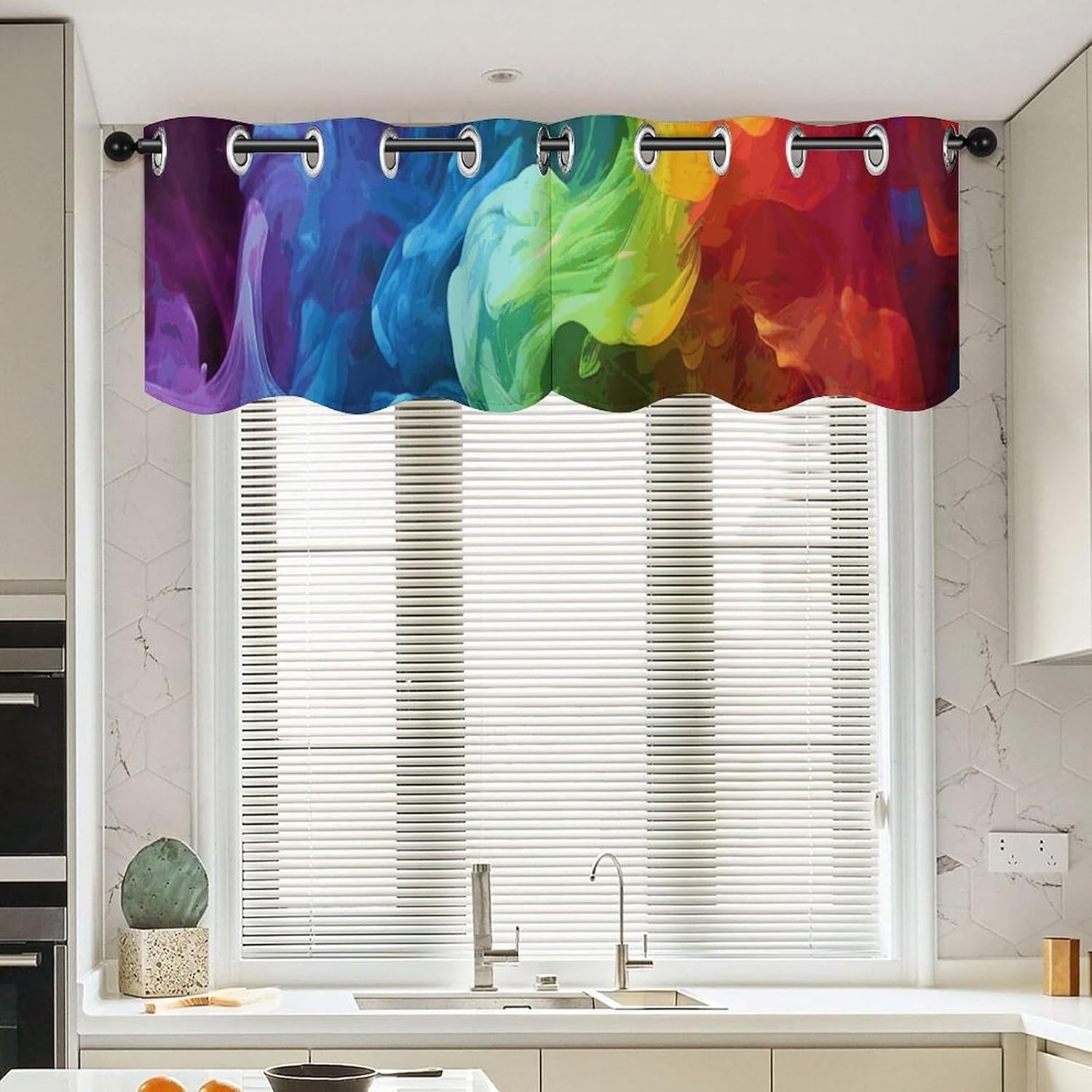 Introducing our 2-piece Rainbow Smoke Curtain Valance, a wonderful blend of functionality and elegance to elevate your window decor. Measuring 52 x 18.1 inches per piece, this Rainbow Smoke curtain set fits most windows, making it a versatile choice for any room. Crafted from premium curtain fabric, it combines soft touch with long-lasting durability, bringing comfort and practicality to your space. This Rainbow Smoke modern curtain features an elegant appearance and smooth texture, adding sophistication to your windows. As a light filtering curtain, it gently softens sunlight while providing moderate privacy, creating a warm glow—ideal for spaces wanting natural light without harsh glare. It also boasts impressive light-blocking performance, insulating your room from heat, protecting furniture and floors from UV damage, and creating a comfortable environment for better sleep. Designed for convenience, each Rainbow Smoke curtain has a 4.5cm curtain hole for easy installation on most rods. The washable fabric maintains its shape and softness after multiple washes, with nice drape to keep it neat. Whether you need a kitchen curtain, cafe curtain for a cozy nook, or tier curtain for layered decor, this Rainbow Smoke set fits well. Versatile and stylish, this Rainbow Smoke set works seamlessly as Valances or Curtain Valance, complementing various decor styles. It can also be used as a printed curtain to add a subtle decorative touch to your living room, bedroom, kitchen, or other spaces. Suitable for most windows, this Rainbow Smoke modern curtain is a practical that combines functionality with timeless style. Upgrade your window treatments with our 2-piece Rainbow Smoke Curtain Valance set—where quality, style, and functionality meet.