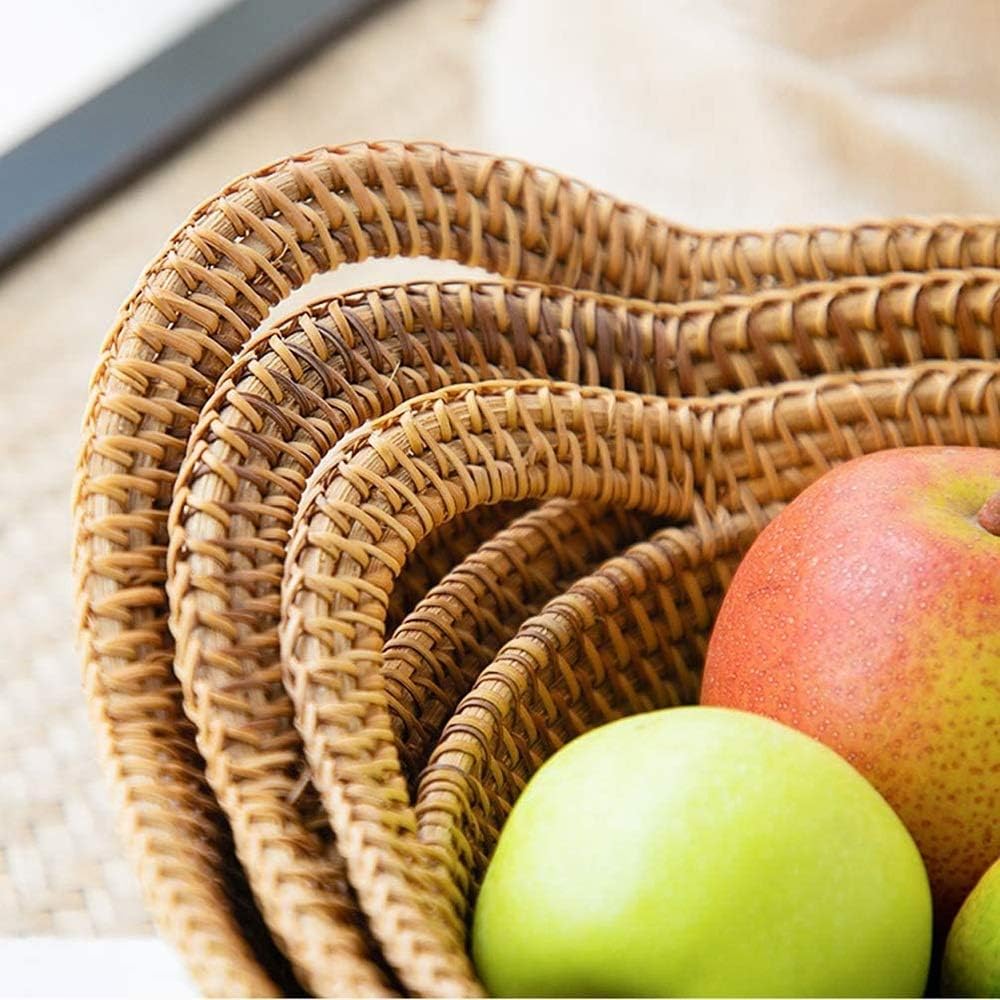 We are committed to providing each customer with the highest standard of customer service. We will provide high quality Items, and ensure customer satisfaction. Name: Rattan Weaving Yuanbao Fruit Basket Craft: manual size:Large size: diameter 30cm high 10cm medium size: diameter 26cm high 9cm small size: diameter 22cm high 8cn Material: Autumn vine Suitable: office, tourism, tea party, home, club The storage box has a simple and stylish design. There are two handles on both sides for easy carrying and woven from natural environmentally friendly materials. There are iron bars as a solid structure. Fits anywhere in the house! Focus on life! Maintenance method: After each use, please wash and dry thoroughly with a sponge or soft cloth to keep the fruit basket smooth and hygienic.