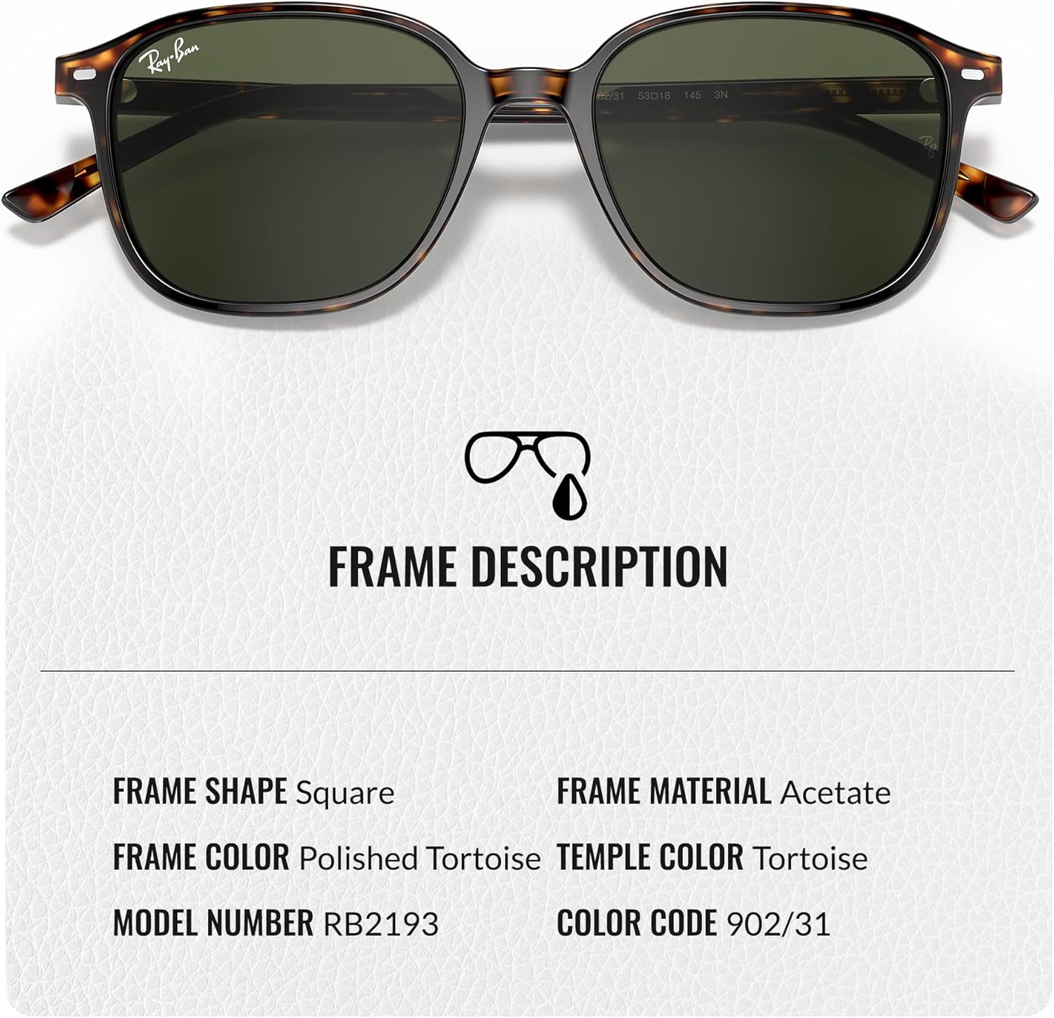 | Color | Polished Tortoise Frame | G-15 Green Lens |