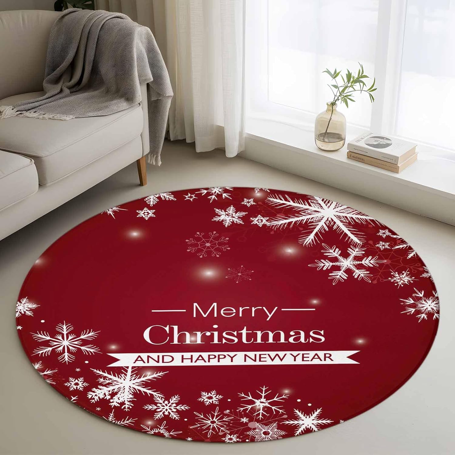 ★Incredibly durable polypropylene fiber, adding to rug longevity. Ensures premise design & vivid colorsbound edges help with ruglongevity & durability. Delicately designed Christmas rugs are perfect for indoor and outdoor decoration, adding a festive touch to your Christmas and making good memories for everyone. Shape: Round Backing: Non-skip rubber points. Package includes: 1 pcs x Christmas Themed Area Rugs Multipurpose & Christmas Decoration This is a perfect addition to create a cozy area or comfy room, give you a really nice touch and looks great in your room. Nice softness makes the rugs adapt to most indoor areas, Includes but is not limited to the following areas, baby nursery, bedroom, girls room, boys room, student dorm room, kids room, living room, playroom, apartment bedroom, themed room, office, beauty room, children play area, classroom reading area, in front of the sectional couch and love seat, under coffee table, small little space, cover the carpet, cover the tiled floor or hardwood floors, makes the whole room more cheerful and inviting. Each interior rug has a unique design with a high-definition print, colorful and bright. The Christmas pattern design never fades, creating a gorgeous and chic timeless image. A perfect gift for Christmas, New Years, Birthdays and more.