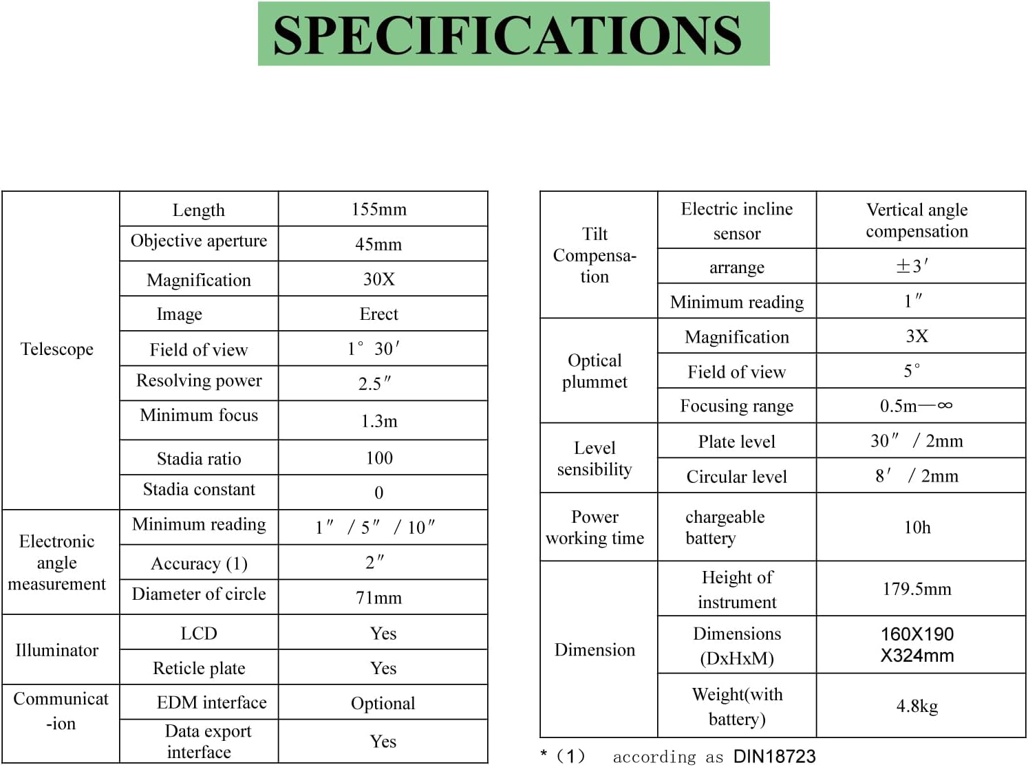 | Model Number | SET1 ELECTRONIC THEODOLITE |