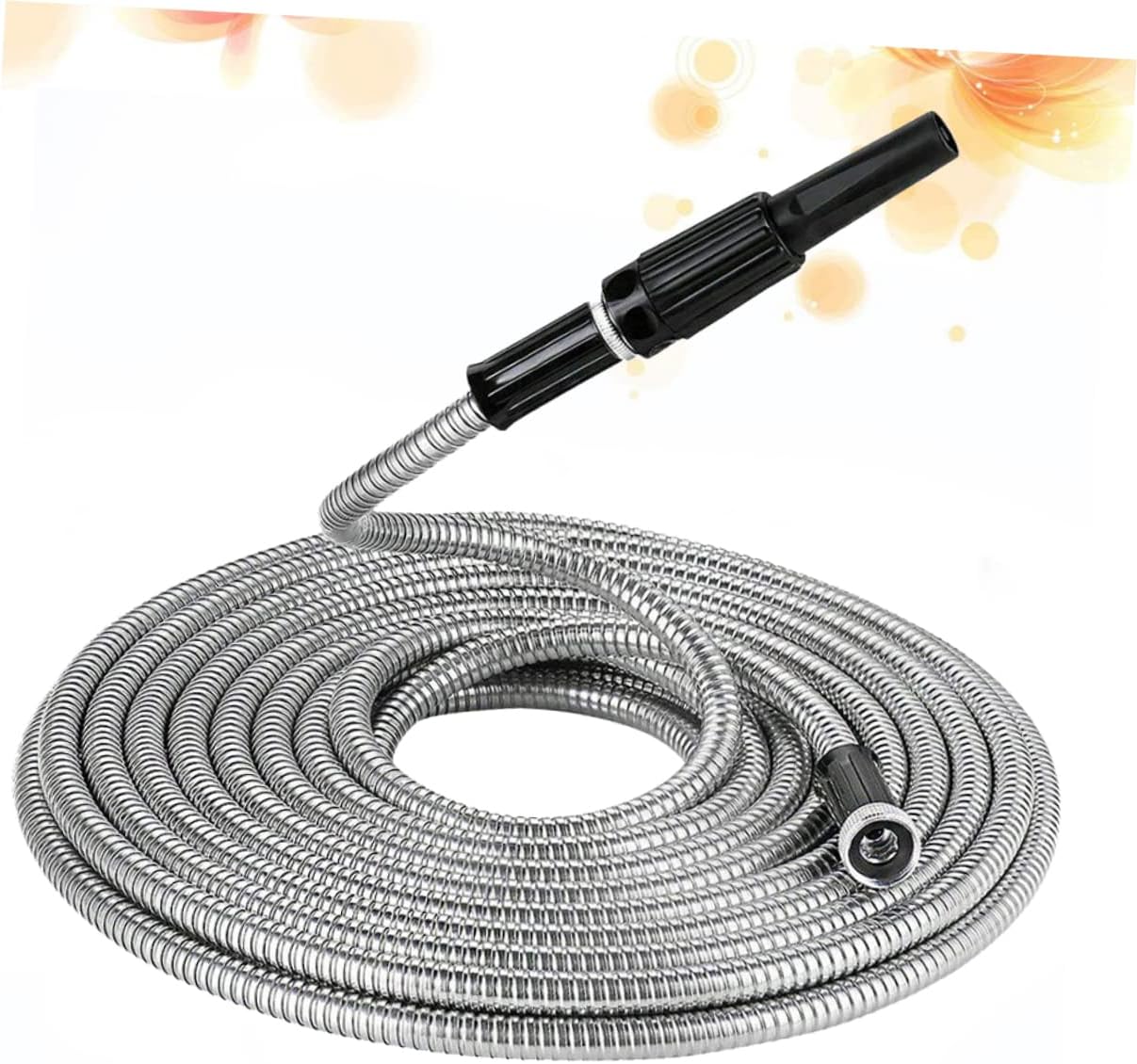 Package Include 1 x garden hose Features - Material: Stainless steel, PVC Stainless Steel Garden Hose. - Size: 2300 x 3 x 3 cm Telescopic Garden Hose. - Color: Silver. - Support varying nozzles for multiple purposes; meets all your watering needs - watering and trees, lawn and yard, cleaning windows, gardens and swimming pools, car or pet washing etc Water Hose. - internal hose in a sturdy stainless steel outer layer make it truly live up to its durability; puncture proof, thorn proof, corrosion proof and enough to dogs chewing Watering Hose. - Adopted from material, it is durable and use Garden Hose. - The concept for the design always remains flexible; glides smoothly over surfaces without marring or snagging; ease of use without struggling with hose kinks. - No water flow stoppages, even when it finds itself in a knot; the adjustable nozzle has varied patterns for versatile watering needs; tight stainless steel connectors leaks.Goods DescriptionWater Hose Are you looking for a professional, yet garden hose? Are you in search of a sturdy, trustworthy tool that can do multiple jobs at once? , ! Our professional garden hose must meet you needs.Watering Hose It is one of for you