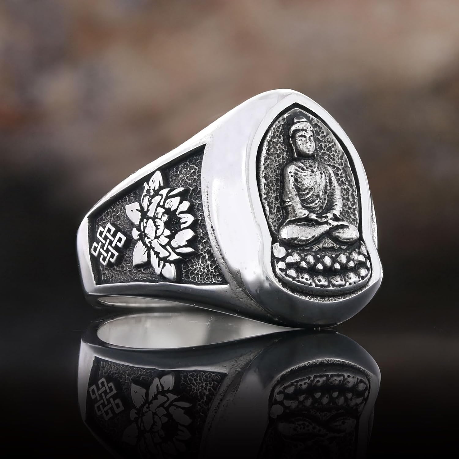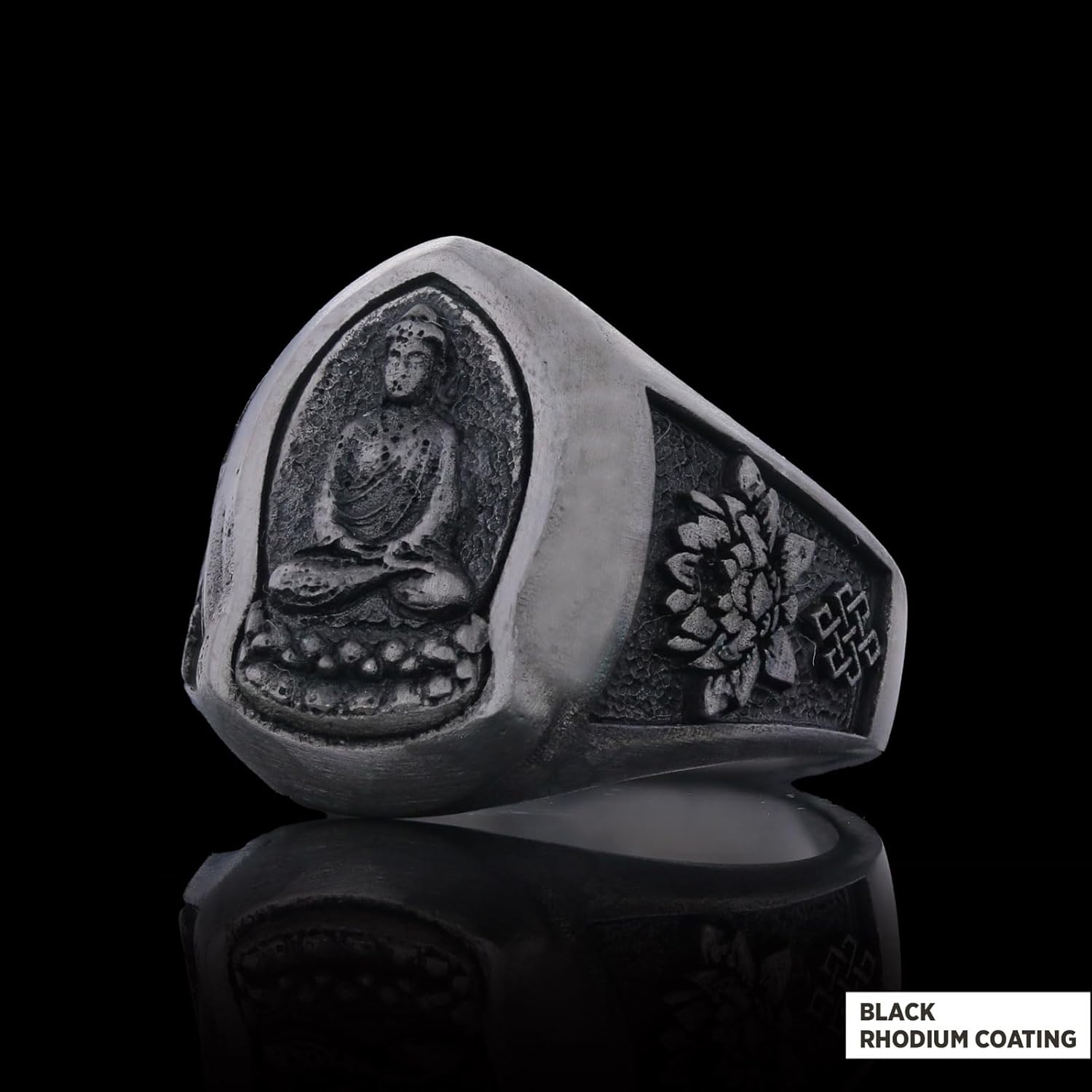 Product Details: ✅ Material: 925 Sterling Silver, Gold Coating, Black Rhodium Plated ✅Ring Size: Available in various sizes (please refer to our sizing chart) ✅Handmade with exceptional craftsmanship ✋🎨 ✅ Dimensions: 18,5mm / Weight: ±17,5gr Buddha Ring, Buddha Ring with Stones, Symbol of Wisdom and Tranquility, Symbol of Peace and Enlightenment, Meditation Jewelry, Zen Buddha Ring 💎 Premium Silver: Our rings are crafted from premium sterling silver, ensuring exceptional quality and durability. The lustrous silver surface serves as the perfect canvas for intricate detailing, allowing the symbols and engravings to shine brilliantly. 🌟 Tailored Fit: We understand the importance of a comfortable and well-fitted ring. Our skilled artisans will work closely with you to ensure that your ring fits perfectly, providing both elegance and comfort for daily wear. Each one of our products is hand-made with utmost care. We take our consumers’ satisfaction seriously and manufacture 925 Sterling Silver Ring with love for our craft and support it with our lifetime warranty service. 🎄🎁🎀🎃Ring is a great gift for yourself, friends, classmates, teammates, colleagues, Valentine's Day, boyfriend, girlfriend, birthdays, anniversaries, graduation ceremonies, parties, family reunions, Mother's Day, Father's Day, Thanksgiving Day, Christmas, etc.! *
