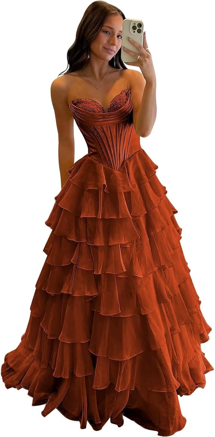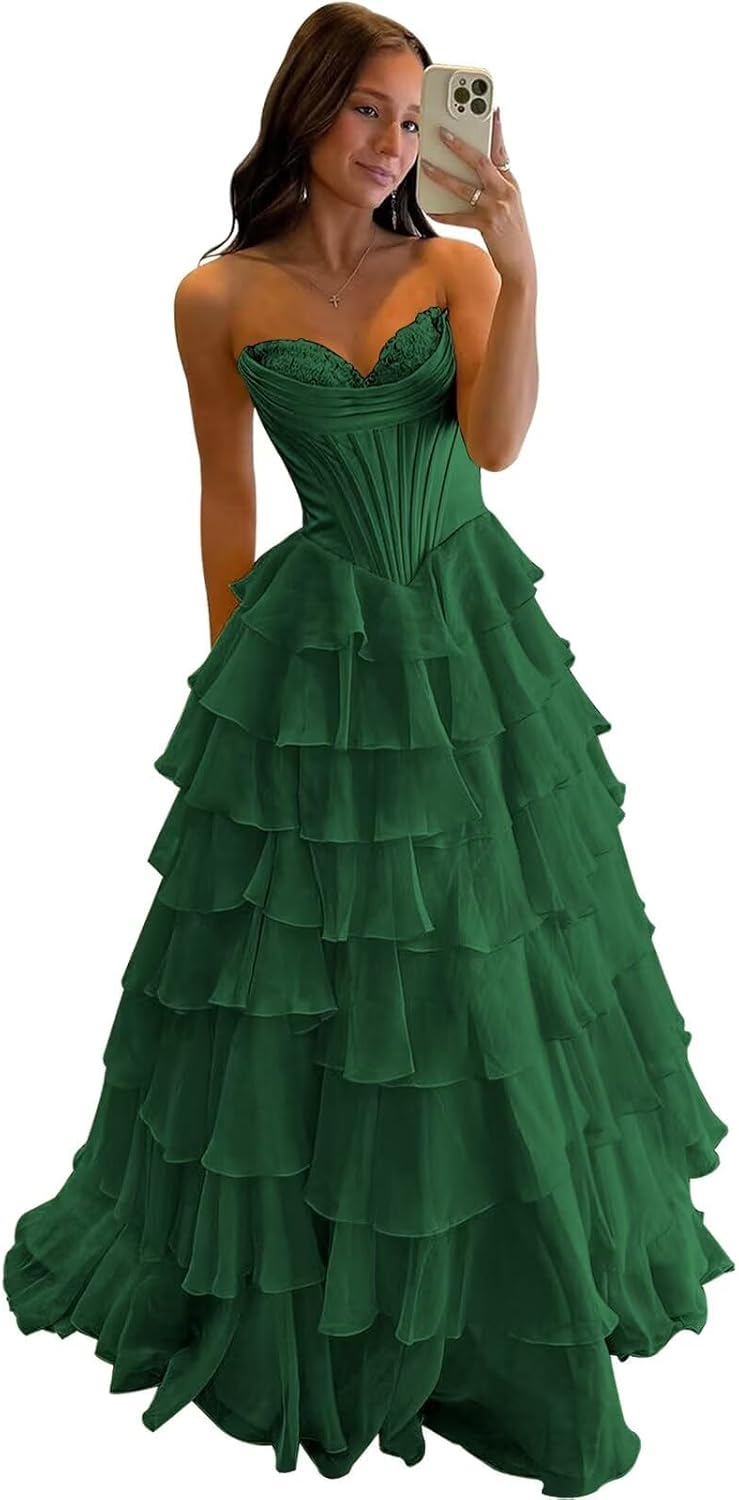 | Embellishment Feature | open back backless corset lace up back, ruffles layered Chiffon, strapless tube top, tiered print florl, with Slit floor length sleeveless |