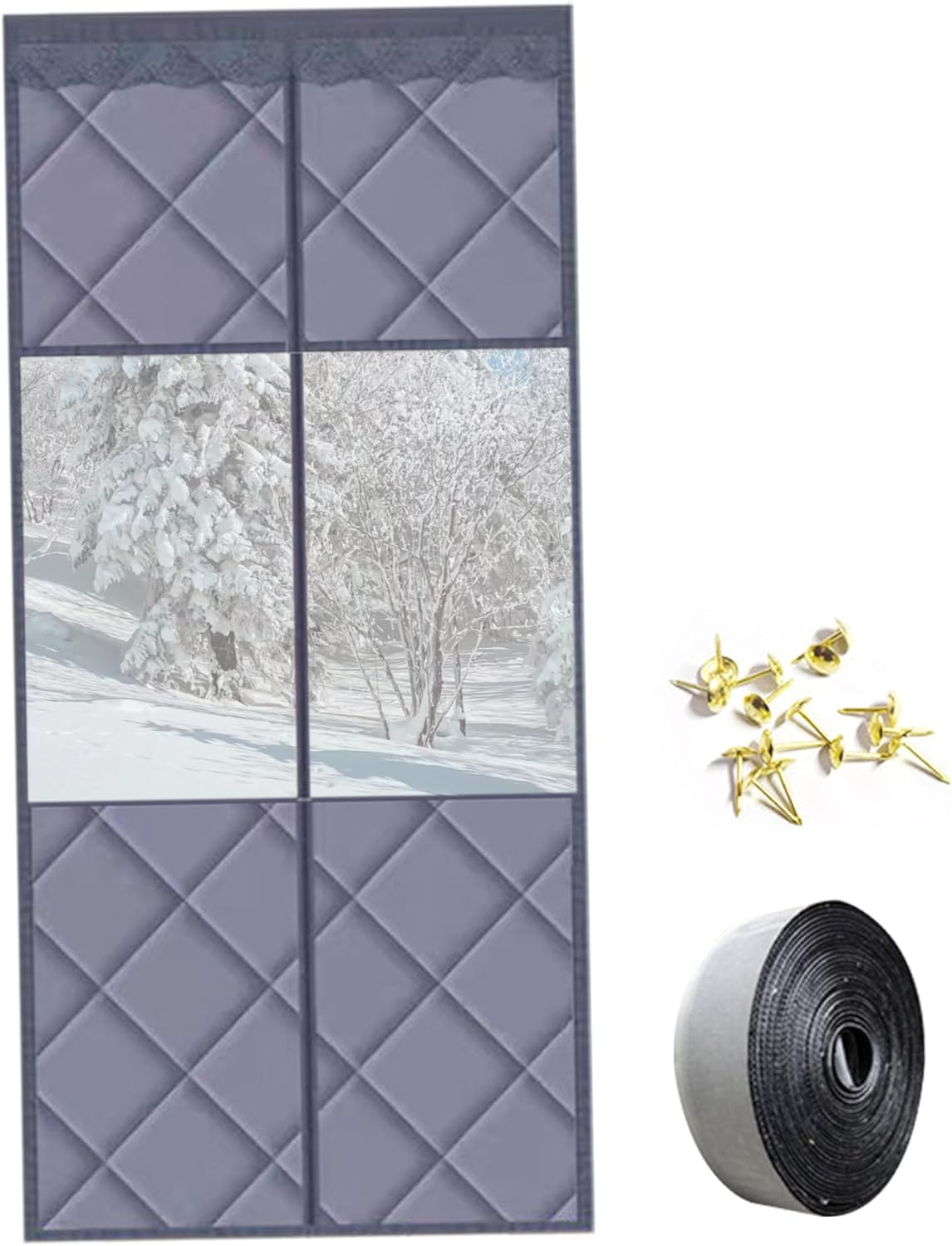 Description: Warmth and Windproof: The Thermal Door Curtain uses thickened high-density Oxford fabric and ample cotton insulation material. Its excellent thickness can effectively prevent cold air from penetrating into your space. It can also effectively reduce noise and create a quiet place for children. The bedroom environment allows them to rest peacefully. It has high-definition transparent windows that allow sunlight to illuminate the space while keeping the cold air out; the auto-closing hot curtain is designed with adhesive strips to ensure easy and safe installation, no need to drill holes, and automatically closes, perfect for nurseries, balconies, and living rooms, made for you A cozy and welcoming haven. Features:. Thermal Door Curtain. -Color: Dark grey. -Material: oxford fabric. -Size:100x200cm/3.28x6.56ft. Instructions for use:. 1. Stick the hook side of the adhesive strip on the hairy side of the curtain. 2. After comparing the position, tear off the backing paper and stick the top first. 3. Paste the two sides of the strip onto the door frame in turn. 4. After adjusting the position finely, press the strip firmly to use it. Note: Manual measurement, please allow slight errors on size. The colors may exist slight difference due to different screens. Package Including 1 * Thermal Door Curtain