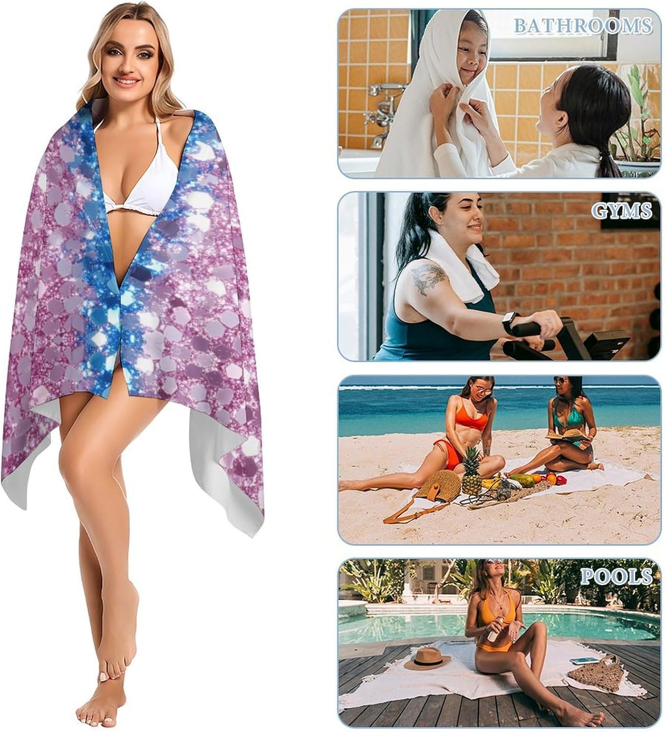 Beach Towel for Women Men Lightweight Beach Absorbent Towel Quick Dry Towel for Swimmers Sand Proof Beach Towels,the beach towel can quickly absorb excess body water, so you won't feel cold after bathing, swimming in the pool, or swimming at the beach