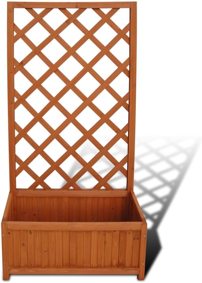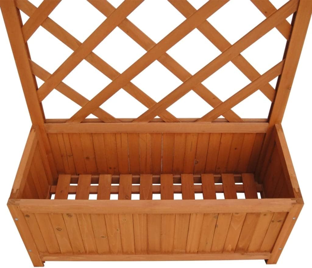 This wood planter, featuring a built-in trellis, will add a touch of charm to any outdoor space.The trellis planter has a large flower box which can accommodate a large number of green plants and flowers. The built-in trellis offers support for climbing plants.Crafted from weather-resistant solid wood, this trellis planter is durable enough to be used outdoors year round. Assembly is very easy.Material: Solid woodTotal size: 2' 4" x 11.8" x 4' 5" (L x W x H)Easy assembly