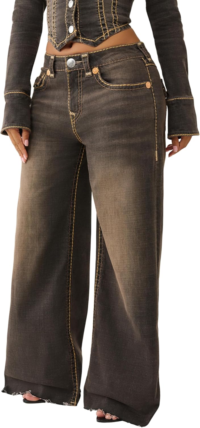 True Religion Jessie Super Baggy Flap Super T Jeans, designed for those who love oversized streetwear style with premium detailing. These jeans feature a relaxed, ultra-baggy silhouette with exaggerated volume through the leg. Finished with iconic Super T contrast stitching and flap back pockets featuring the True Religion horseshoe logo, the Jessie jeans deliver comfort, individuality, and unmistakable brand DNA in one standout piece.Attributes: Brand: True Religion Style Name: Jessie Super Baggy Flap Super T Fit: Super baggy Rise: Mid Rise Stitching: Contrast Super T stitching Pockets: Flap back pockets with horseshoe embroidery Closure: Zip fly with button Care: Machine washable